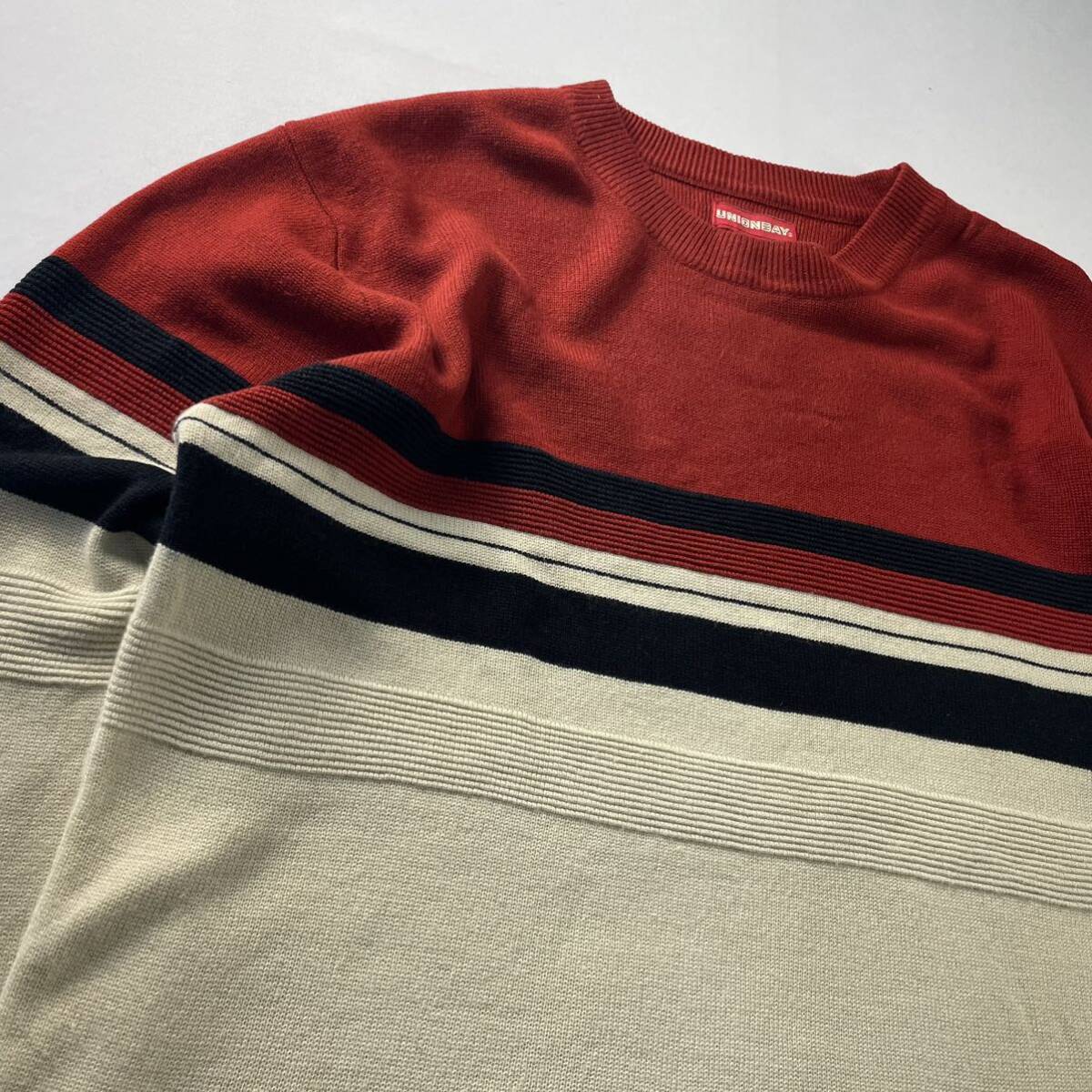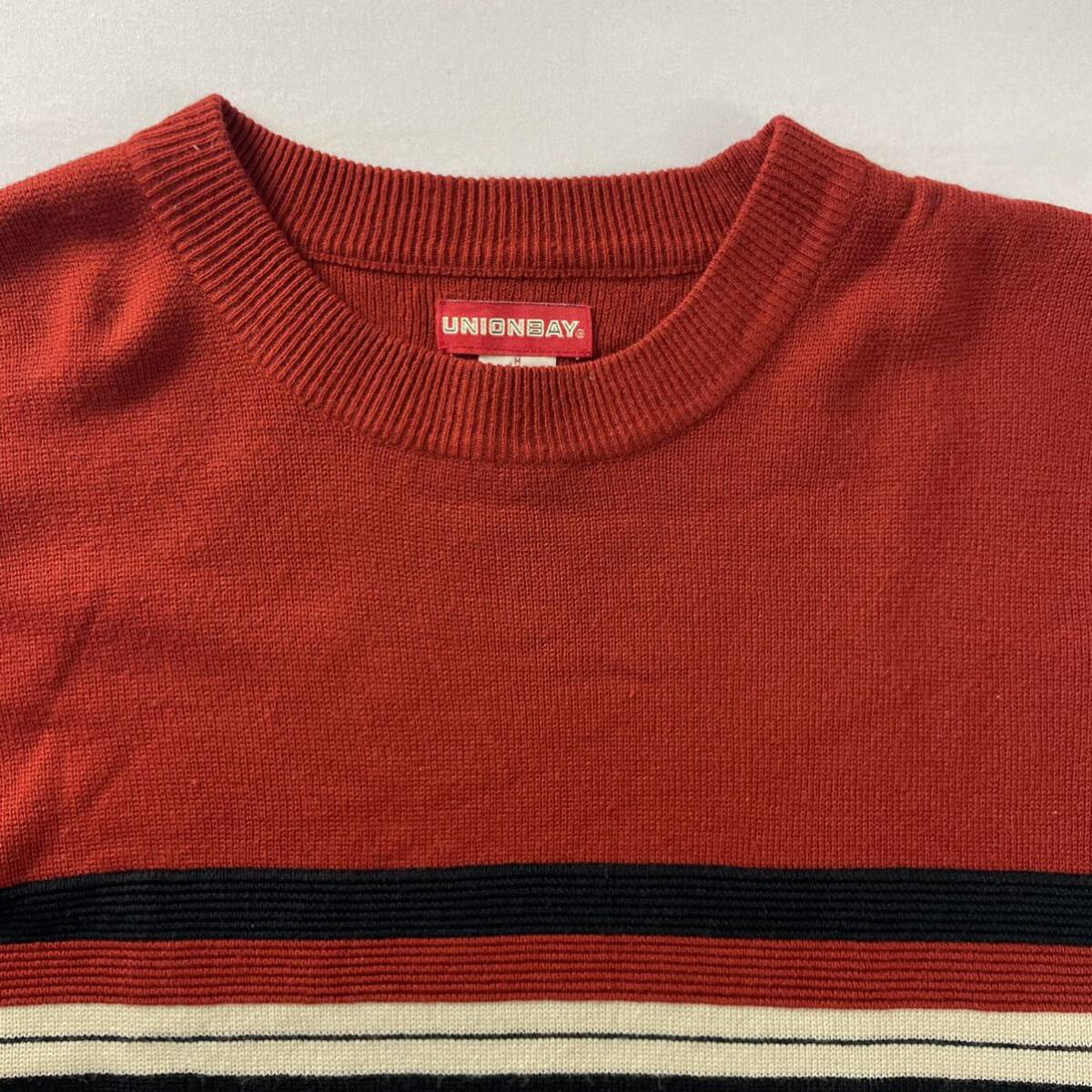 US Vintage 90s UNIONBAY 3D 立体 ボーダー ワンポイント ロゴ 刺繍 デザインニット