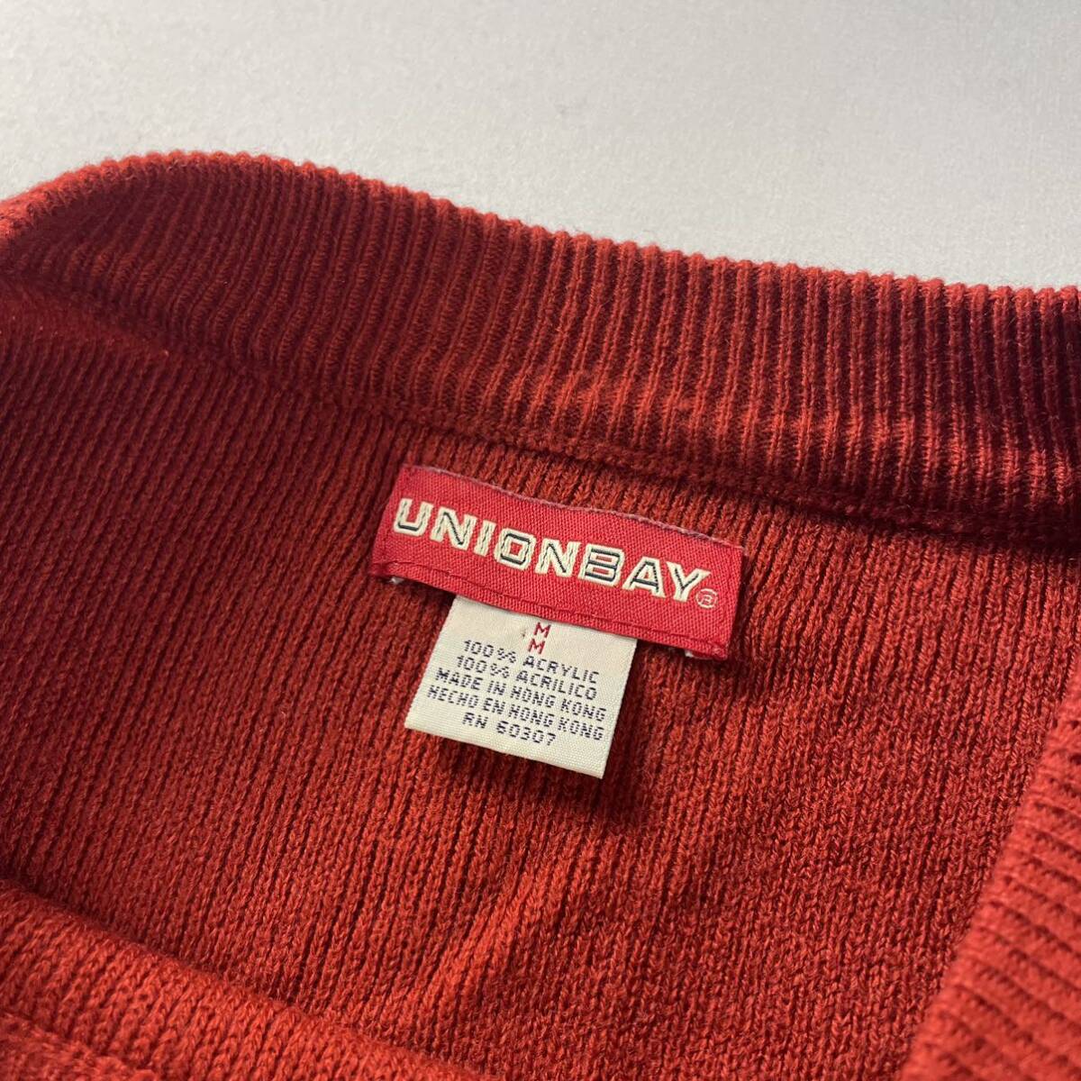 ポイント: ビンテージ90s UNIONBAYの3D 立体 ボーダー ワンポイント ロゴ 刺繍 デザインニットです。