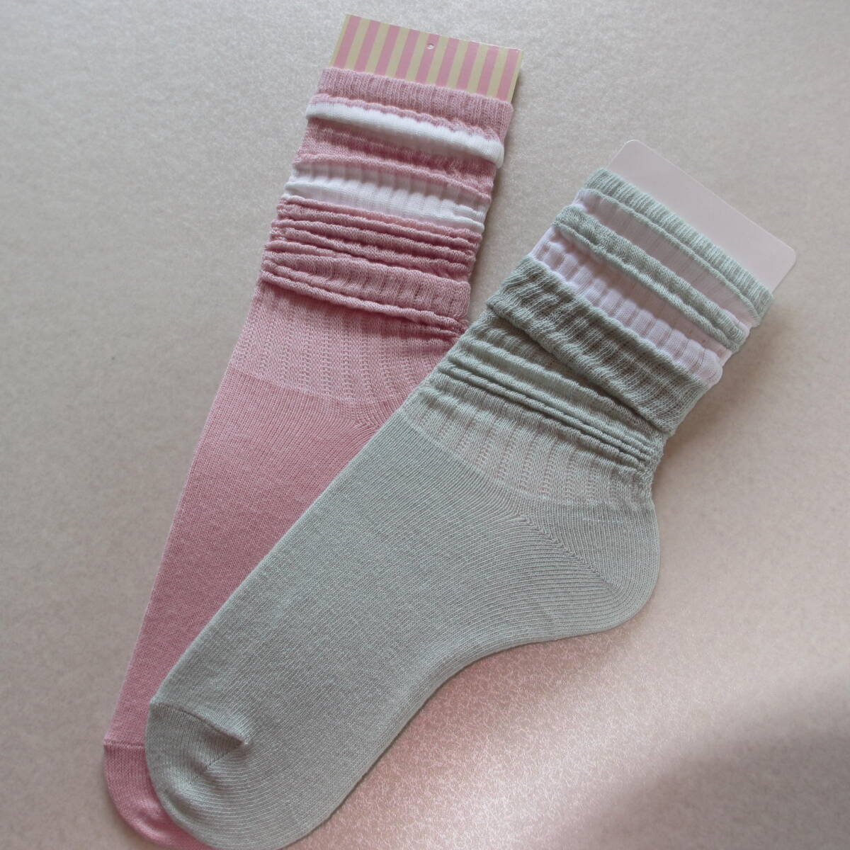 水色地とピンク地色の美しいルーズソックス2足組です。