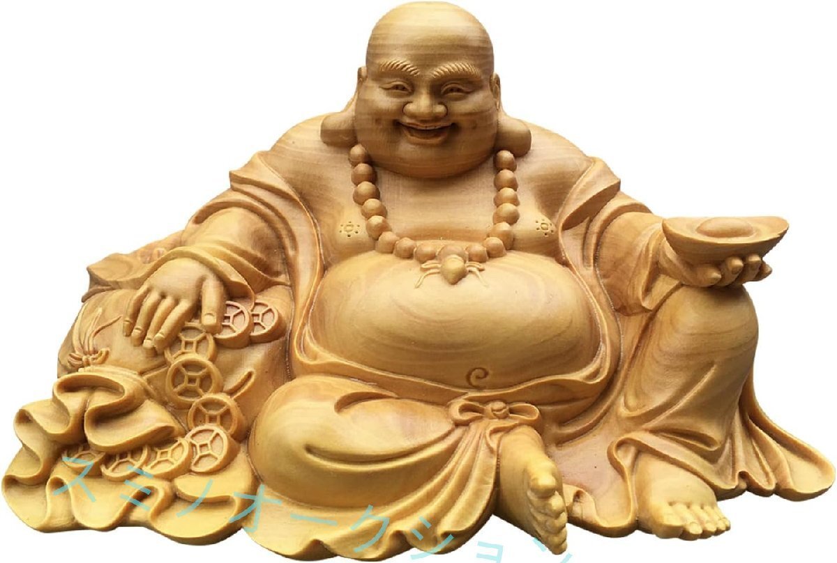 布袋様は民間の幸運仏である。 左手に撫てした古銭、左手に託した金元宝、財を集めて福を集めることができる。