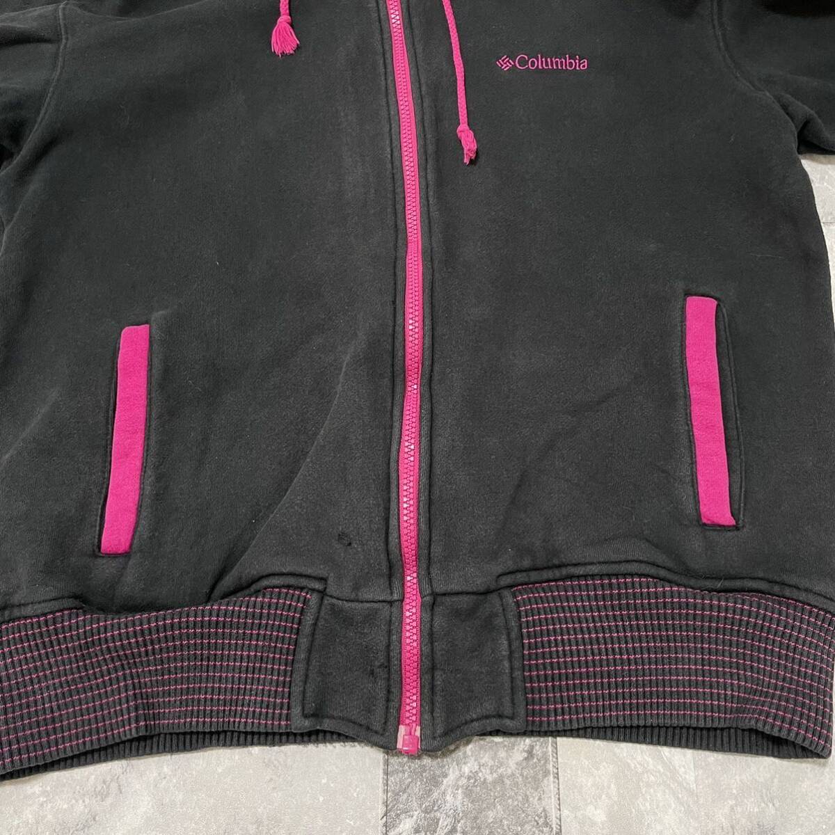 Columbia コロンビア ジップアップフード sweat スウェットパーカー 刺繍ロゴ アウトドア ブラック サイズM 裏起毛 玉FL3485