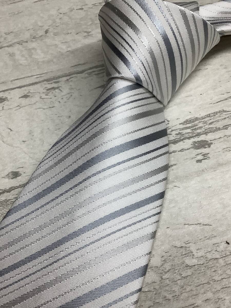 新品未使用 日本製ロングサイズ シルバータイ 礼装ネクタイ シルク100%フォーマルタイ シルバー 白 ポケットチーフ付き