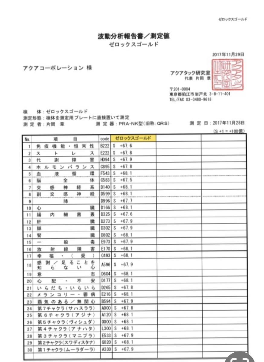 ゼロックスゴールドを身につける事による身体、精神の変化