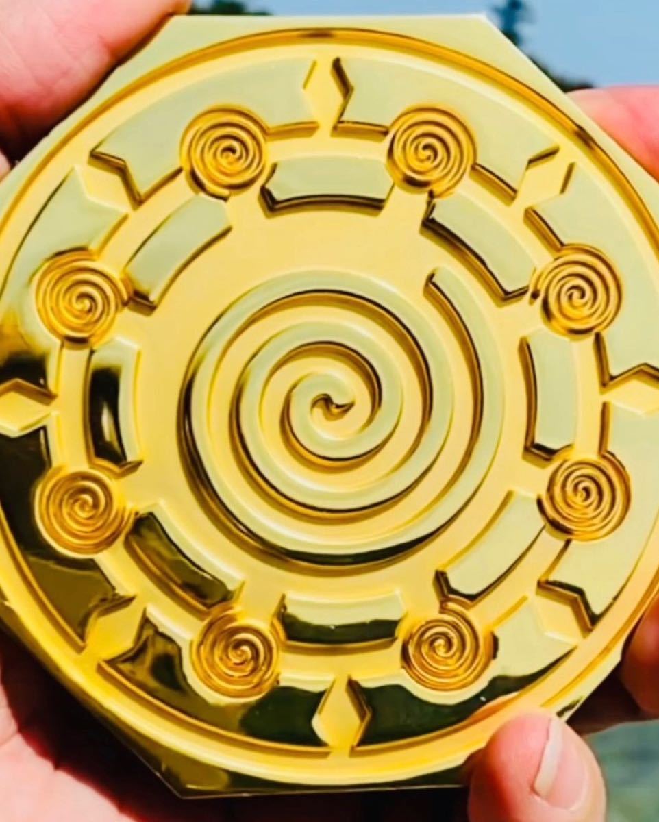 円の溝も宇宙エネルギーと共振する三構造にし、菱形のダイヤの模様が太陽の様に放射しています