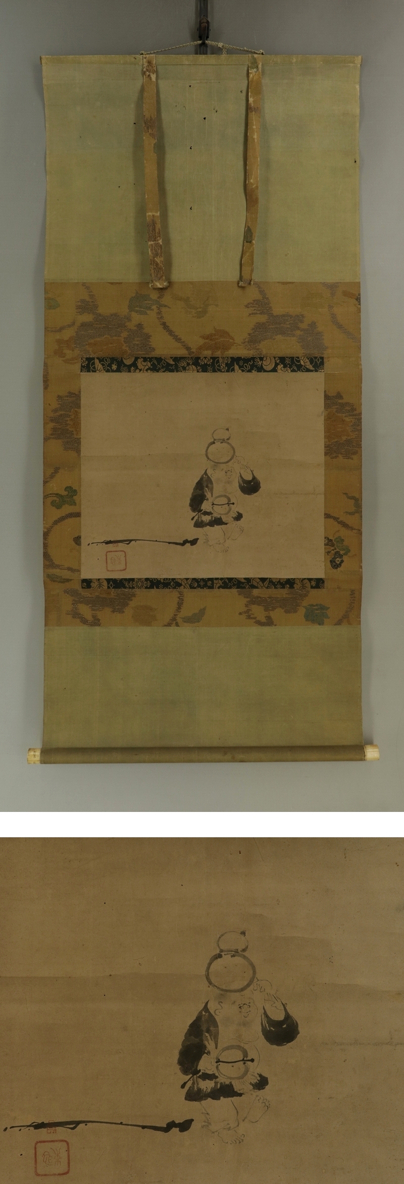 | №2401085【模写】松花堂昭乗【布袋図】◆紙本◆合箱◆掛軸 | |