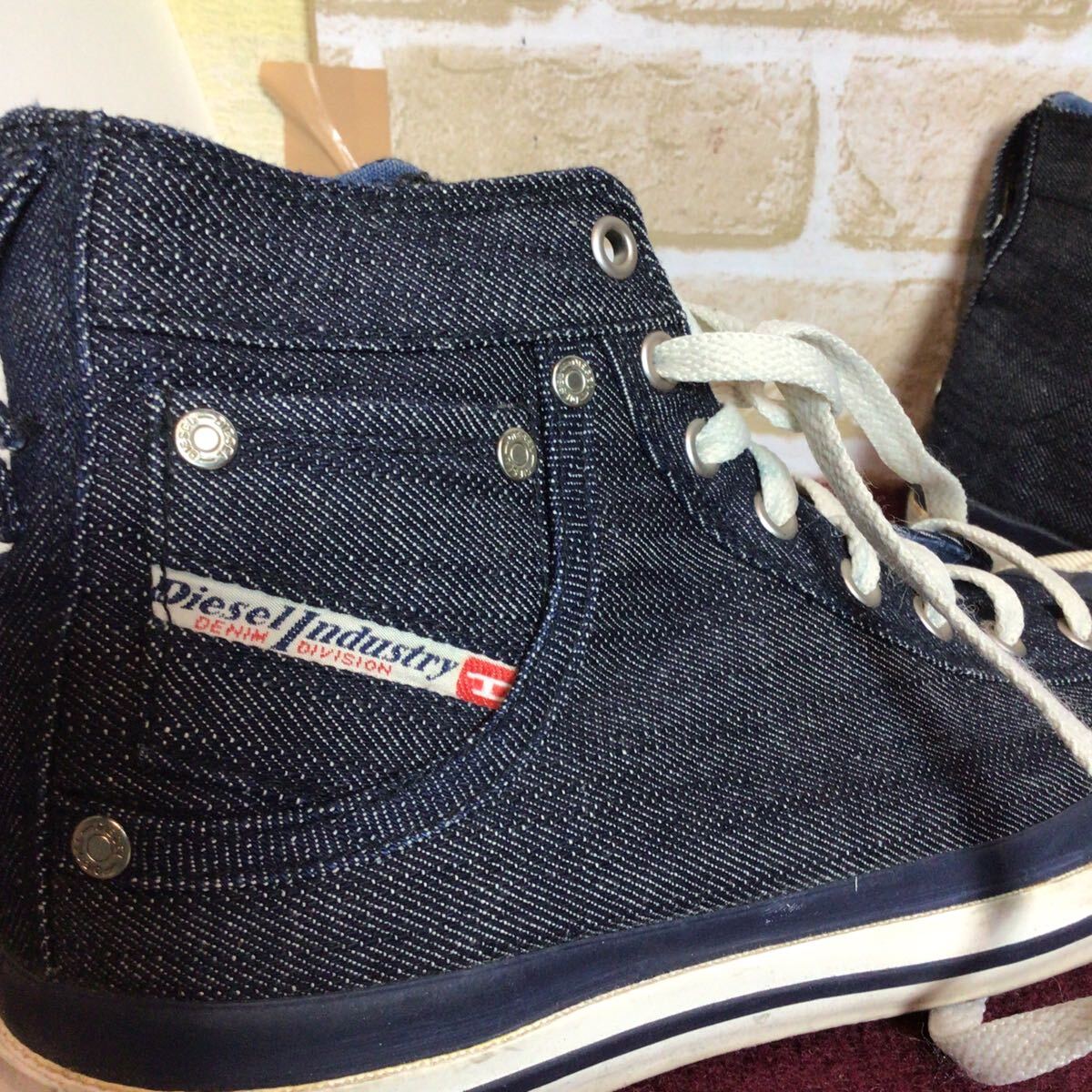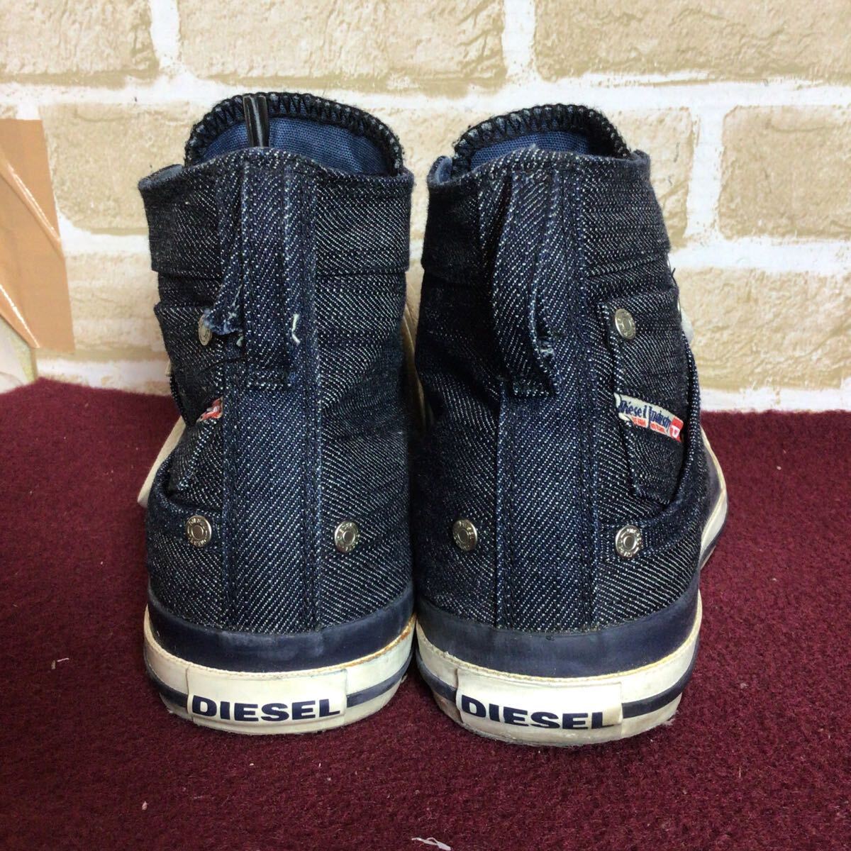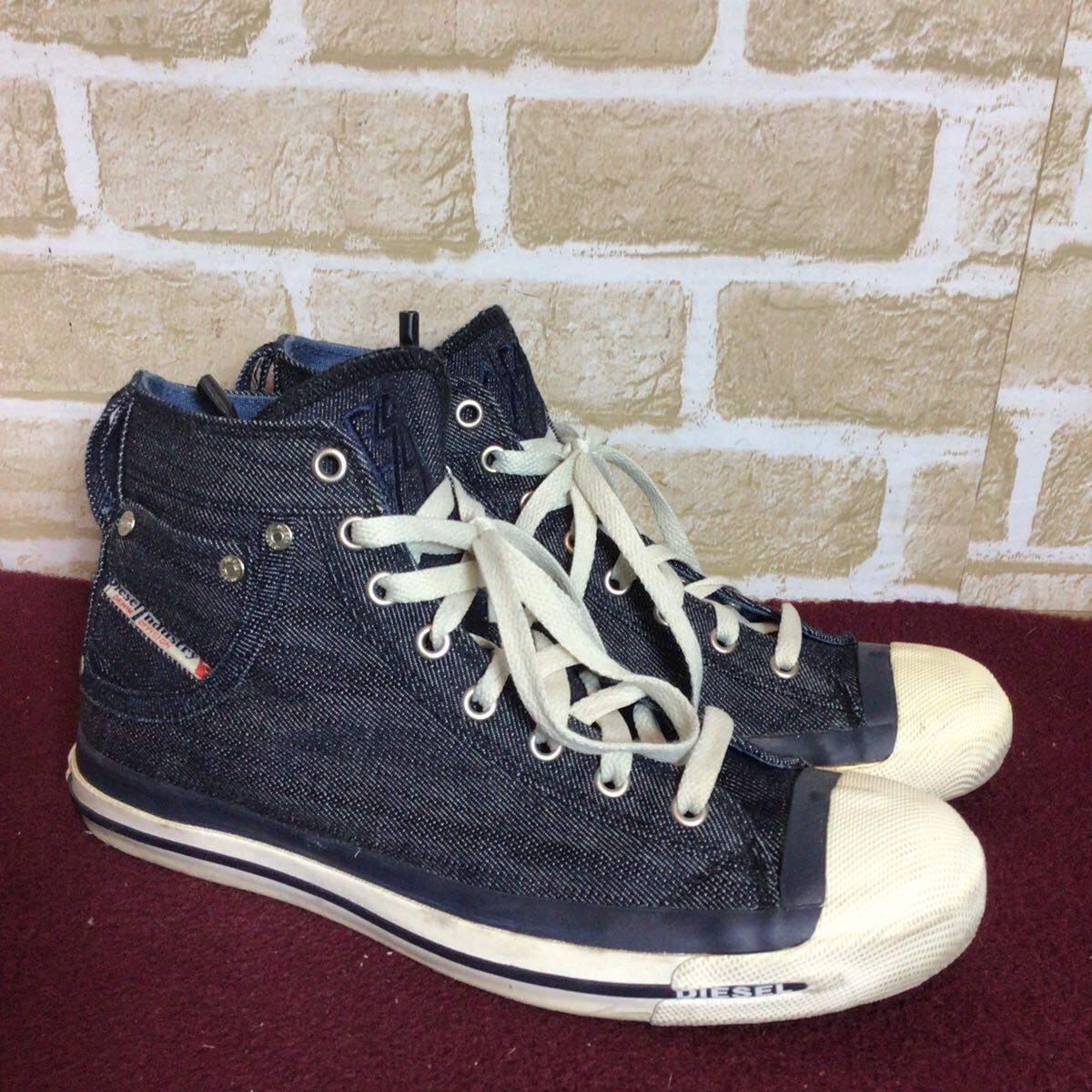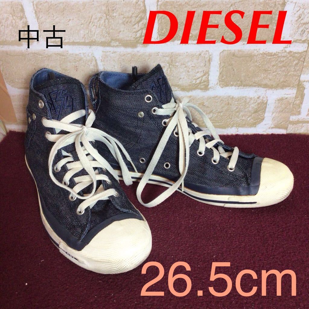 【売り切り!送料無料!】A-354 DIESEL!ハイカットスニーカー!デニム!26.5cm!おしゃれ!かっこいい!スニーカー!中古!