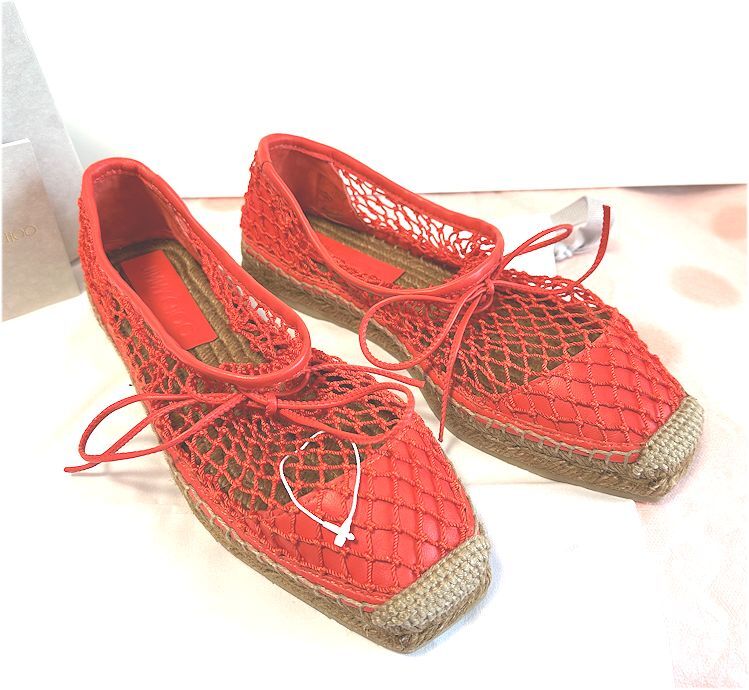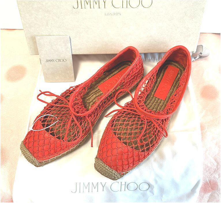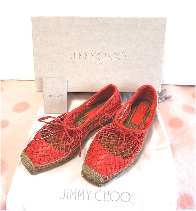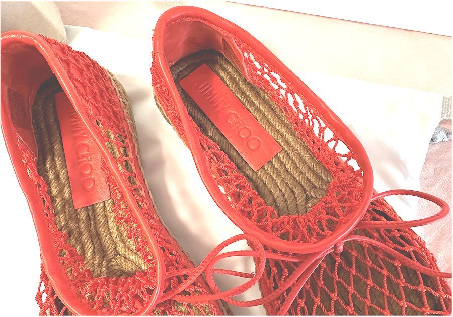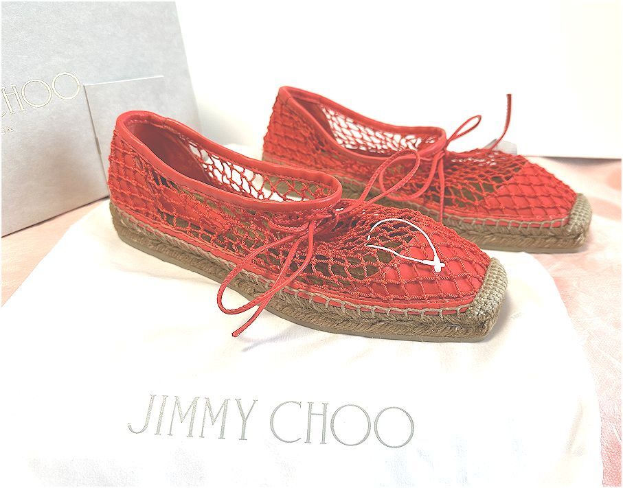 値下★JIMMY CHOO ジミー・チュウ★DAIJA FLAT ネット・ナッパ・エスパドリーユ・ウェッジ・サンダル・マンダリン・36・23cm前後★未使用