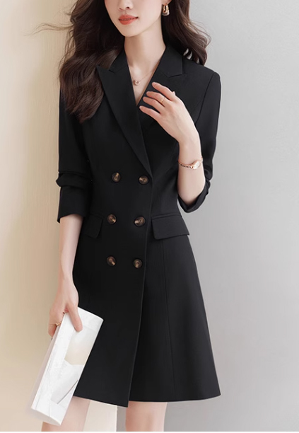 レディースコート風ワンピース黒色S