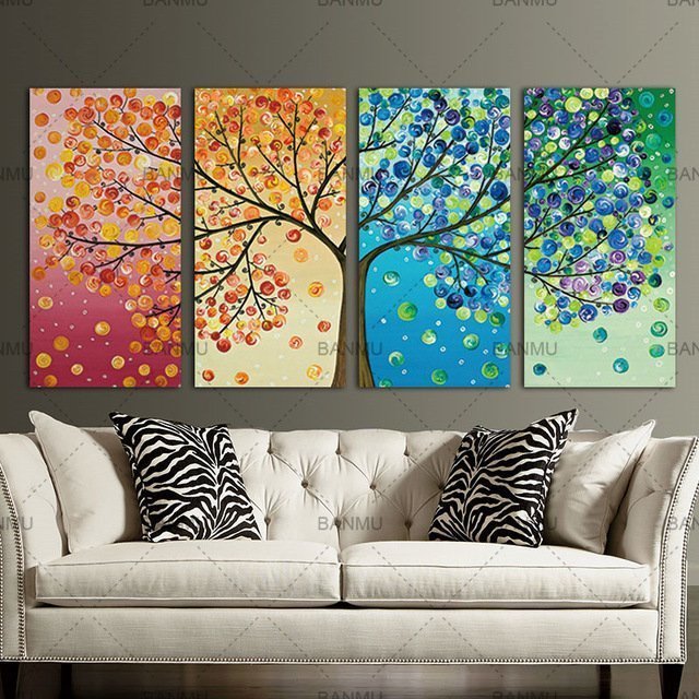 lyw92★ ファブリックパネル ホーム インテリア アートパネル 四季のツリー インテリアモダン 風景 フレーム リビング 4枚セット