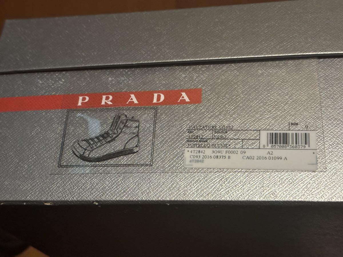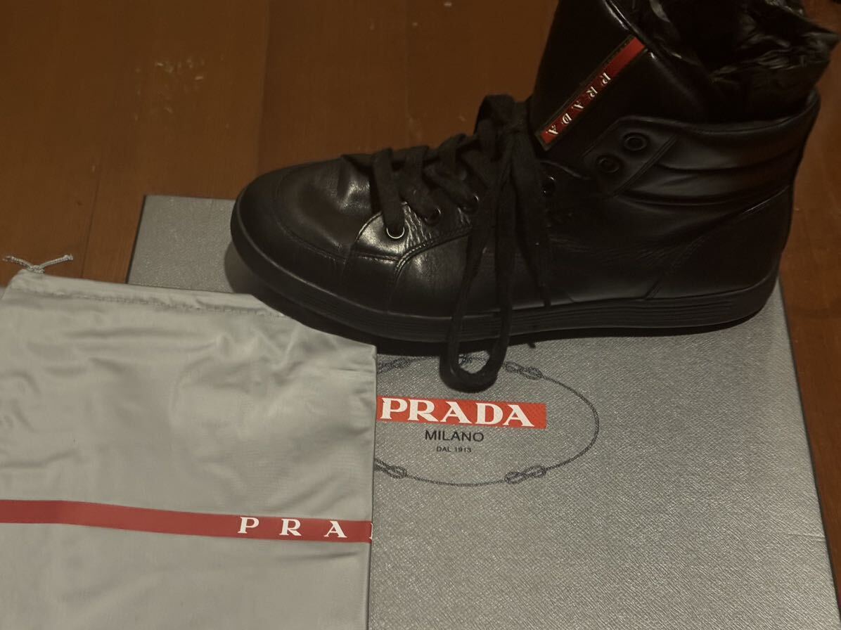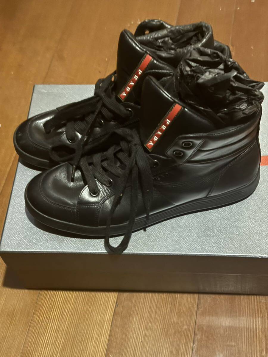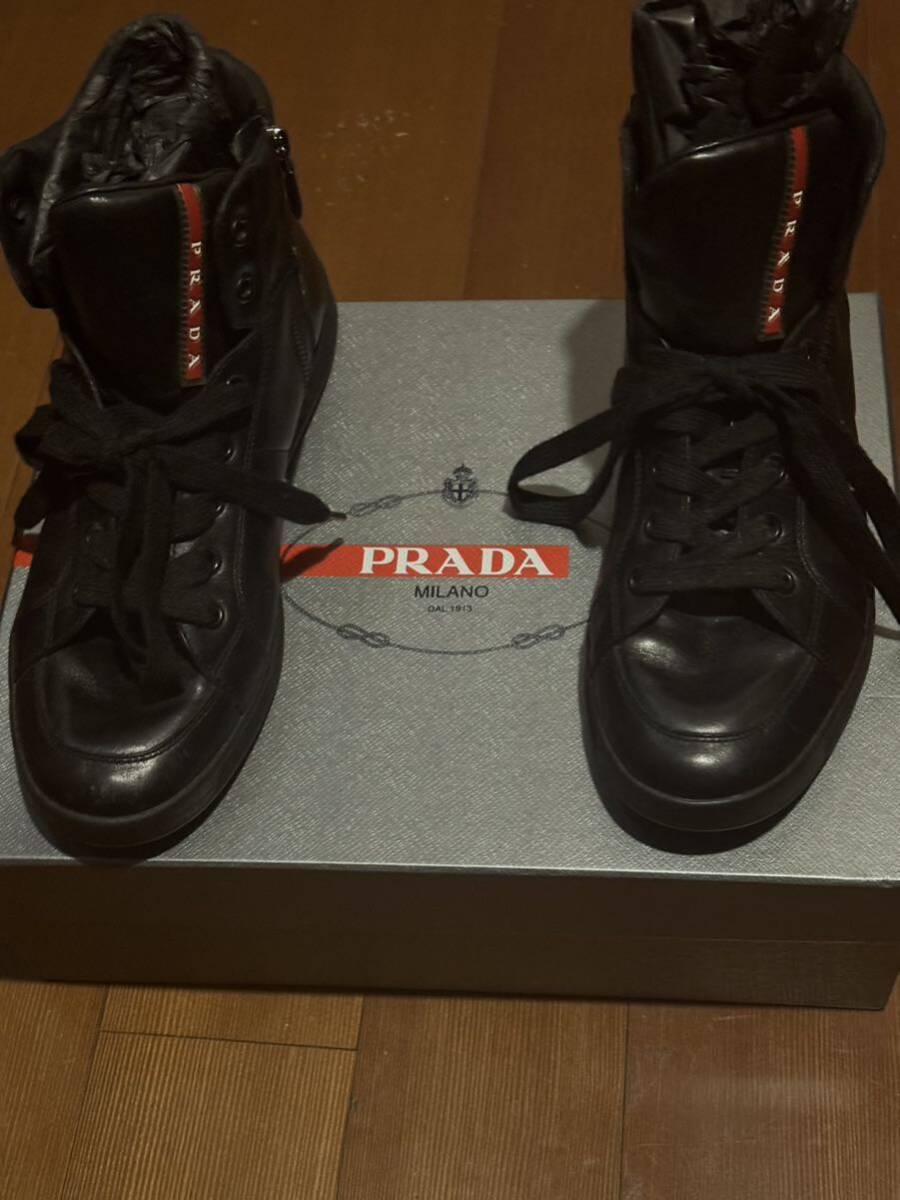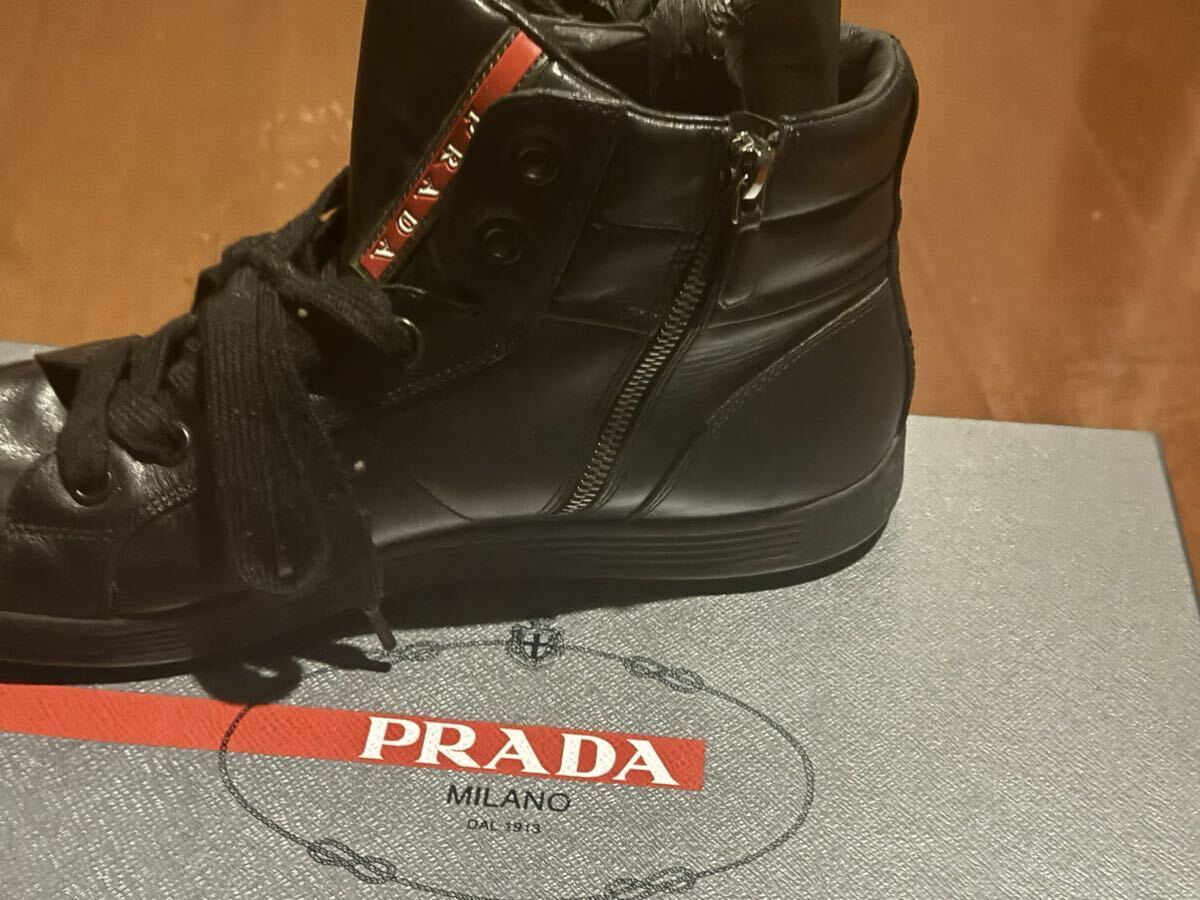 ブラック切り替え、レザータンにプラダブランド部位  ハイカットタイプ で存在感、インパクトも抜群。