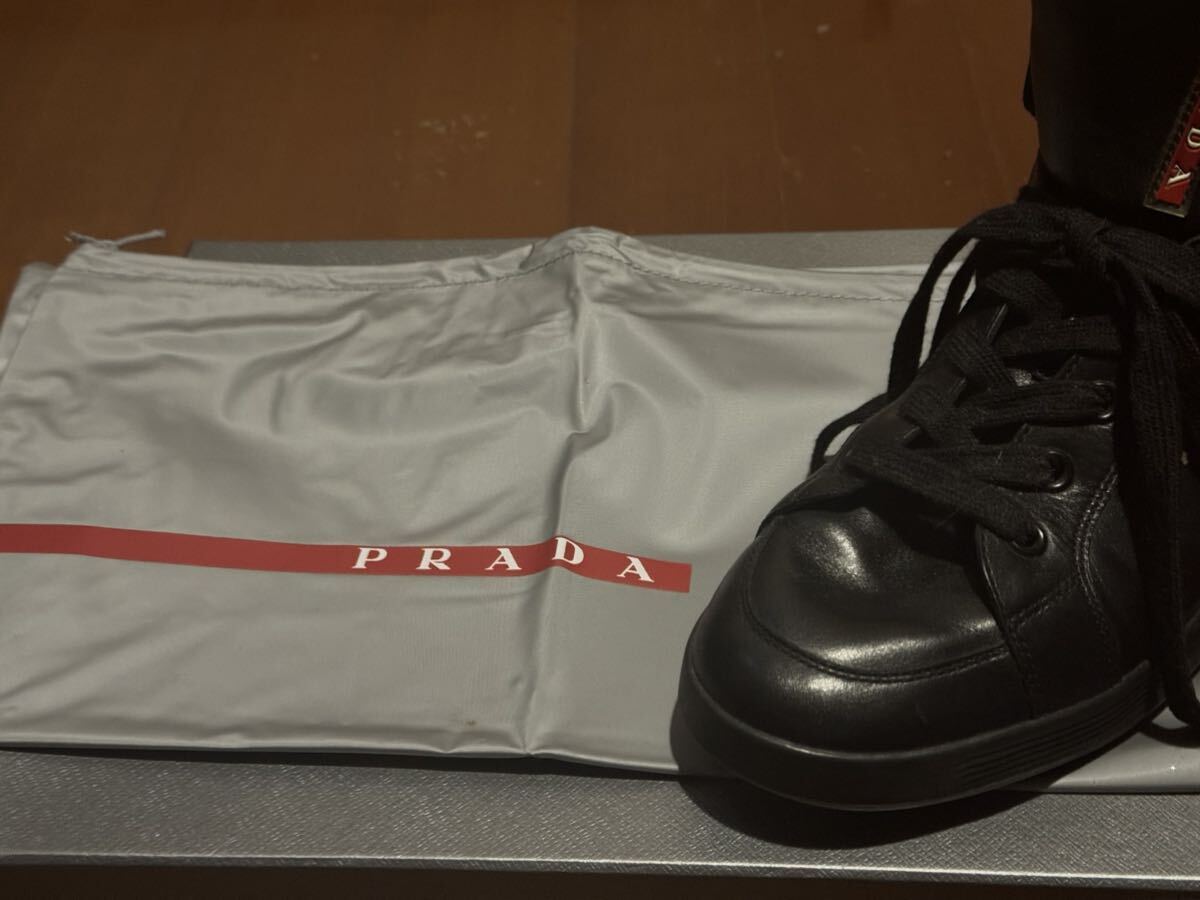 プラダ名作 ブラック レザー ハイカット スニーカー