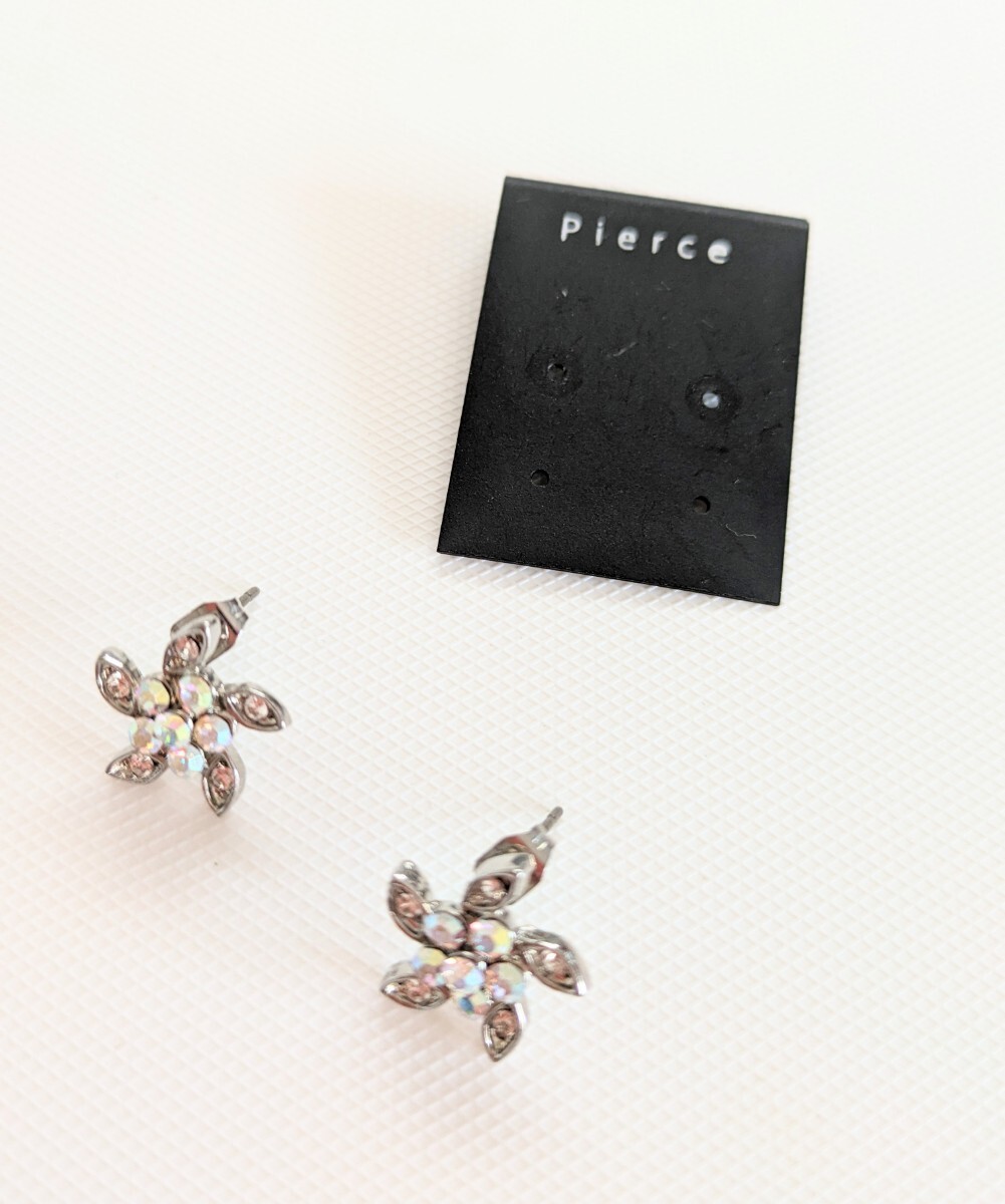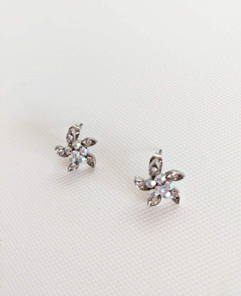 こちらは、新品未使用 ラインストーン お花 フラワー シルバーカラー スタッドピアス になります♪