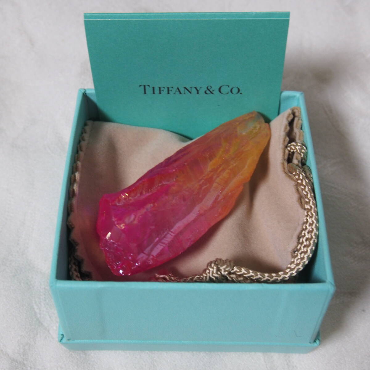 ハイセンス・天然原石 アート !! 「レインボーオーラ原石」&「Tiffany ケース」&「収納袋 ( 未使用・無印 」セット品 ( 管理番号 0 )