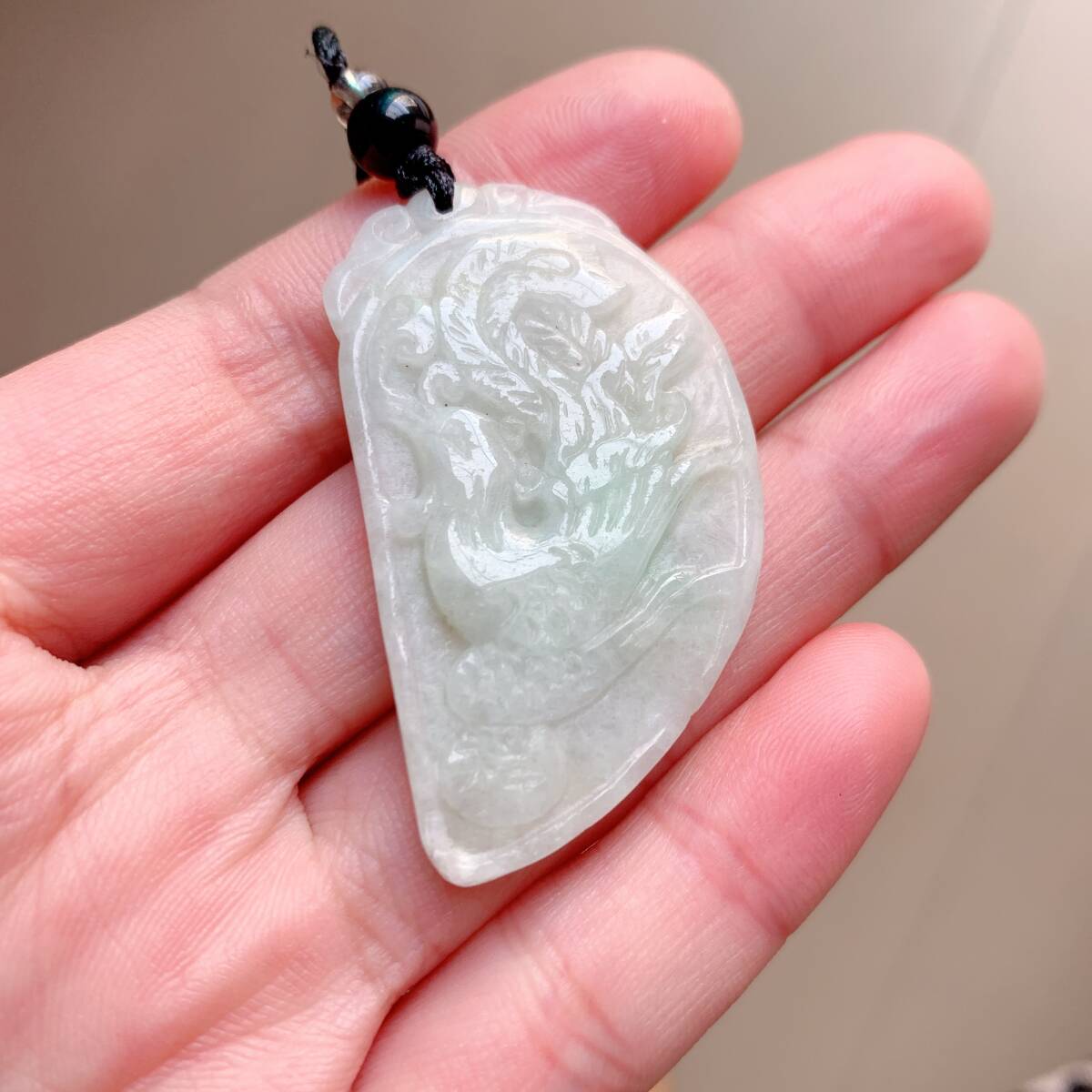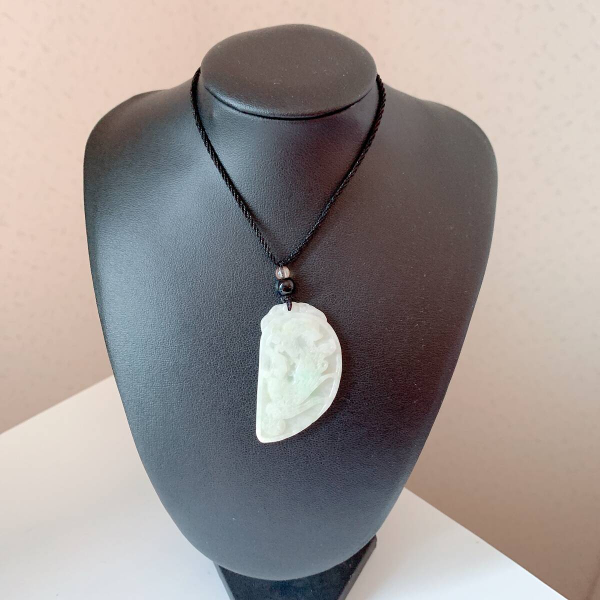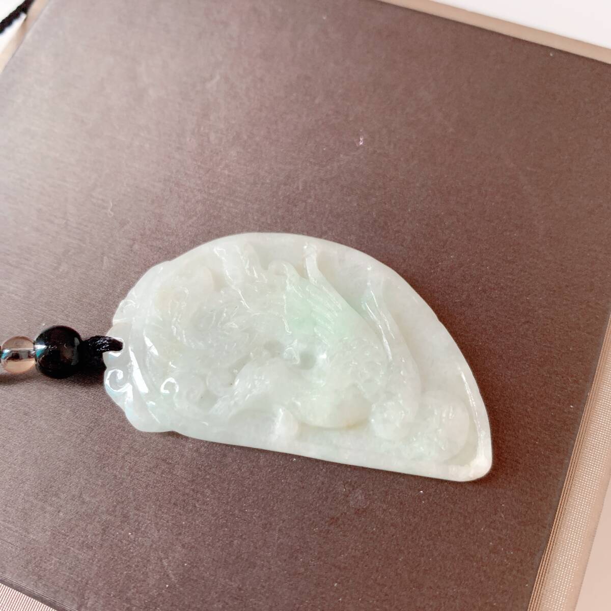 訳あり◇ジェイド(本翡翠)・ヒスイ◇ネックレス◇ペンダント◇鳳凰形◇彫刻◇巾着袋付き◇プレゼントにも 026P32206