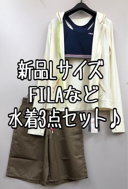 新品☆L♪水陸両用3点まとめて♪日焼け対策ラッシュガード・ボトム♪FILAも☆k310