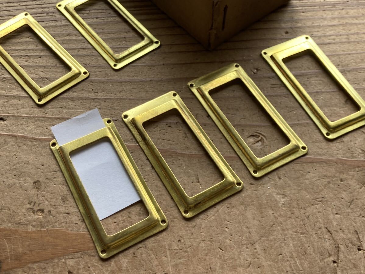 デッドストックの真鍮の立付き品名差し50mm4枚です。