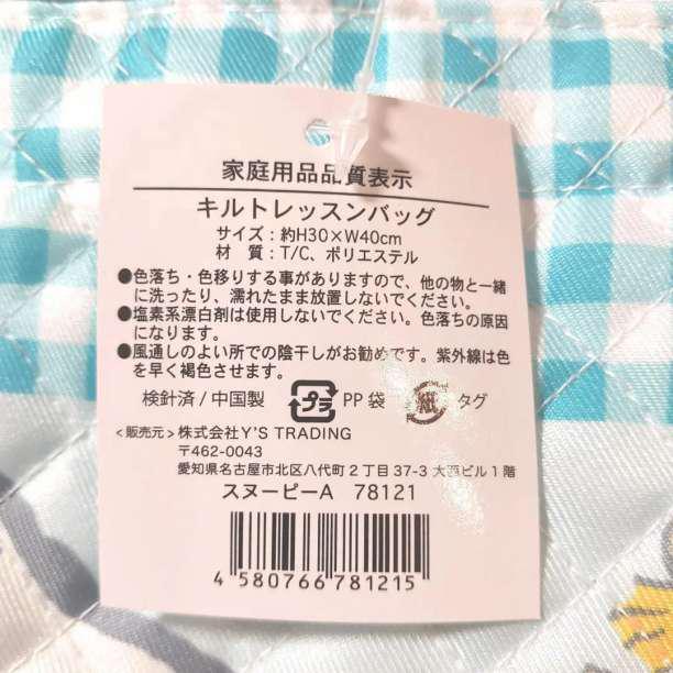 【新品未使用】 スヌーピー キルト レッスンバッグ 男の子 女の子 入学準備 絵本バッグ⑩ となります。(タグ付き)