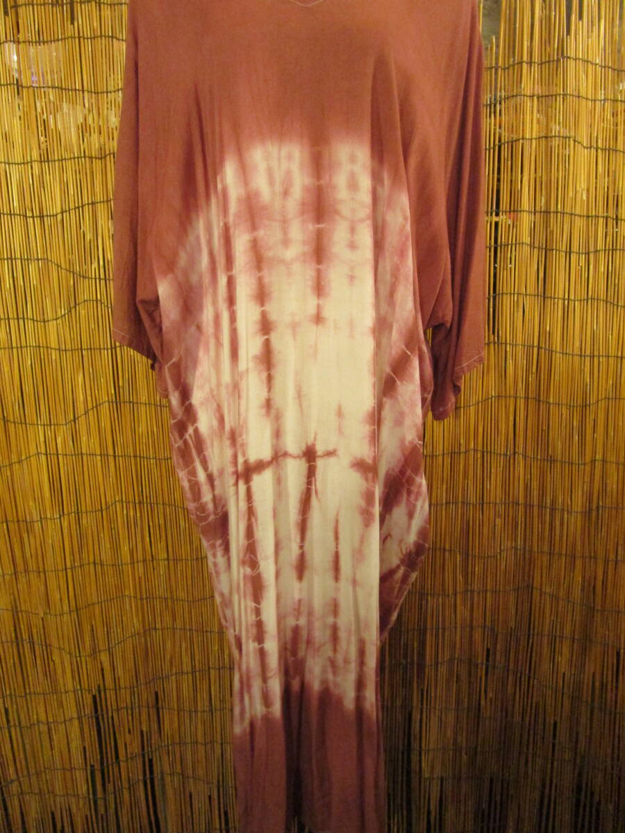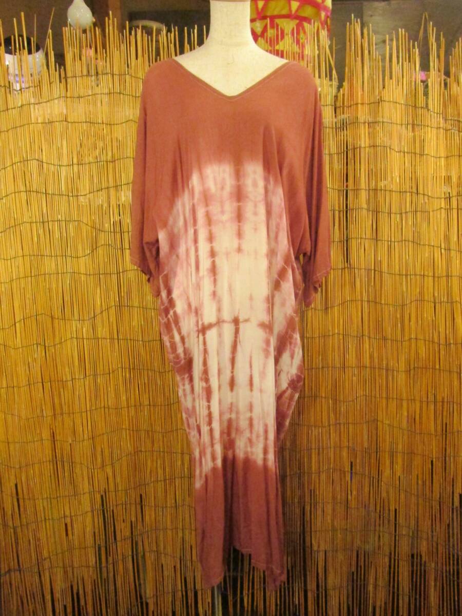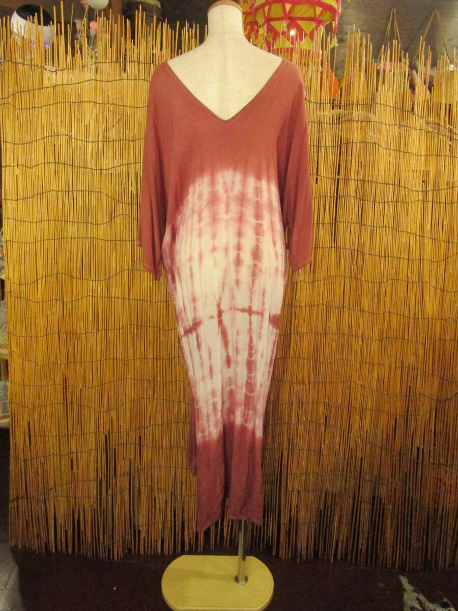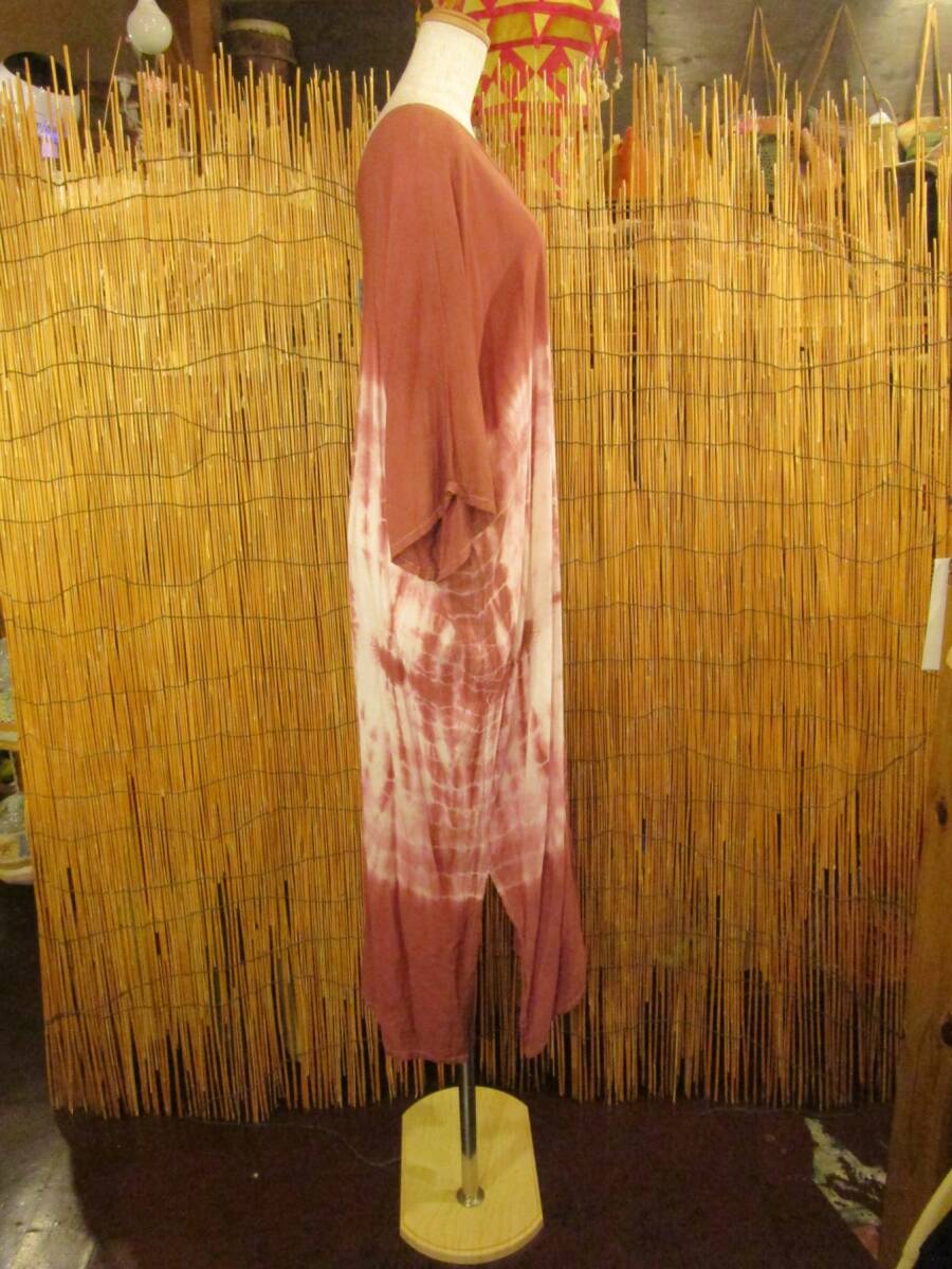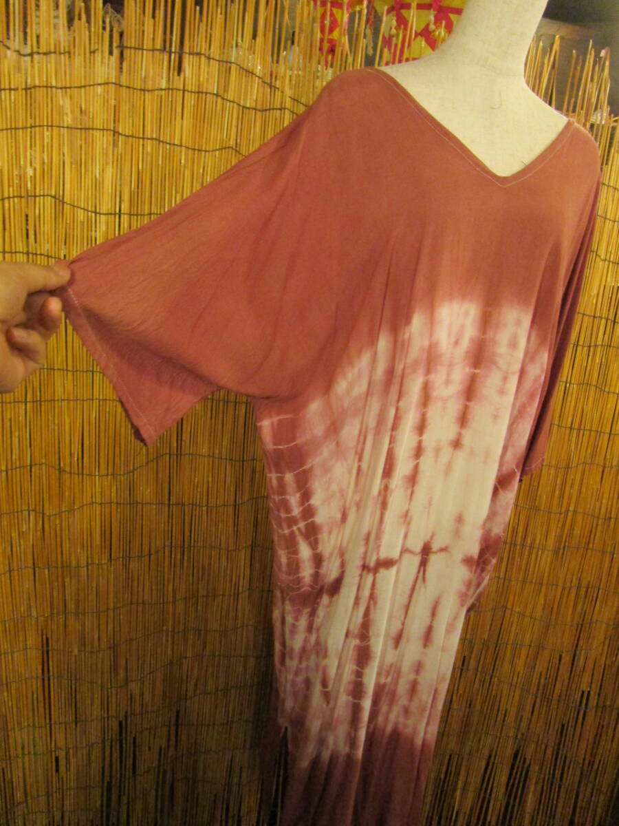 【送料込み/SALE】新品 レーヨン素材 ナチュラル風 タイダイ染め 七分袖 ワンピース エスニック アジアン 民族 旅人 MAJAM