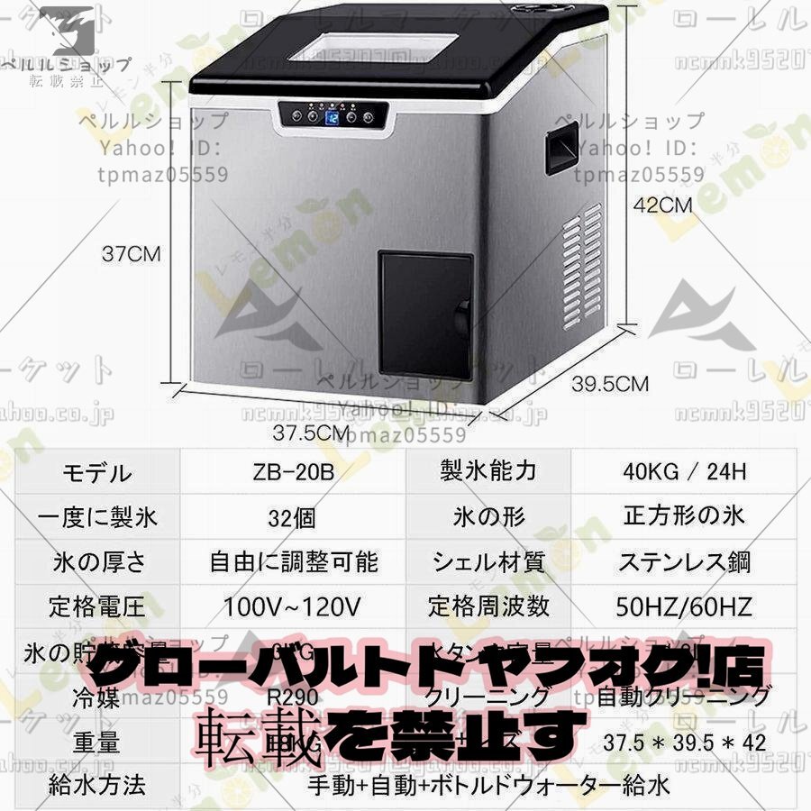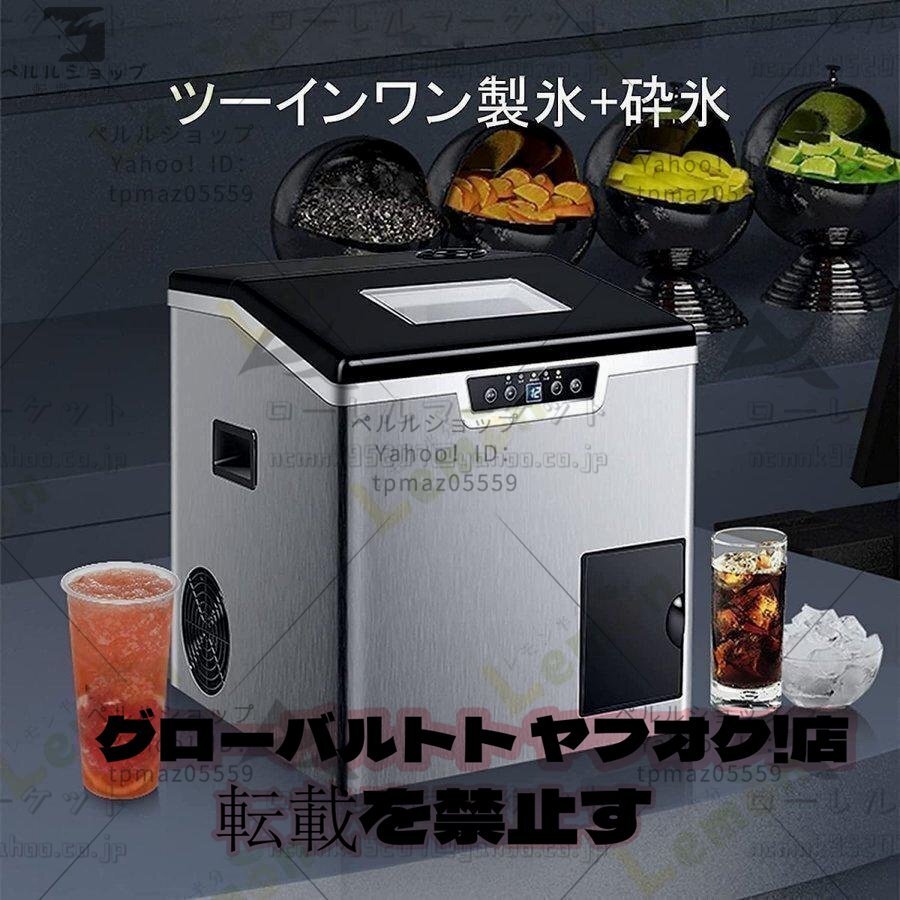 卓上型 自動製氷機 かき氷機 簡単操作 家庭用 業務用 ステンレス鋼 アイスメーカー 家族 パーティー 商業に最適 (スクエア氷)