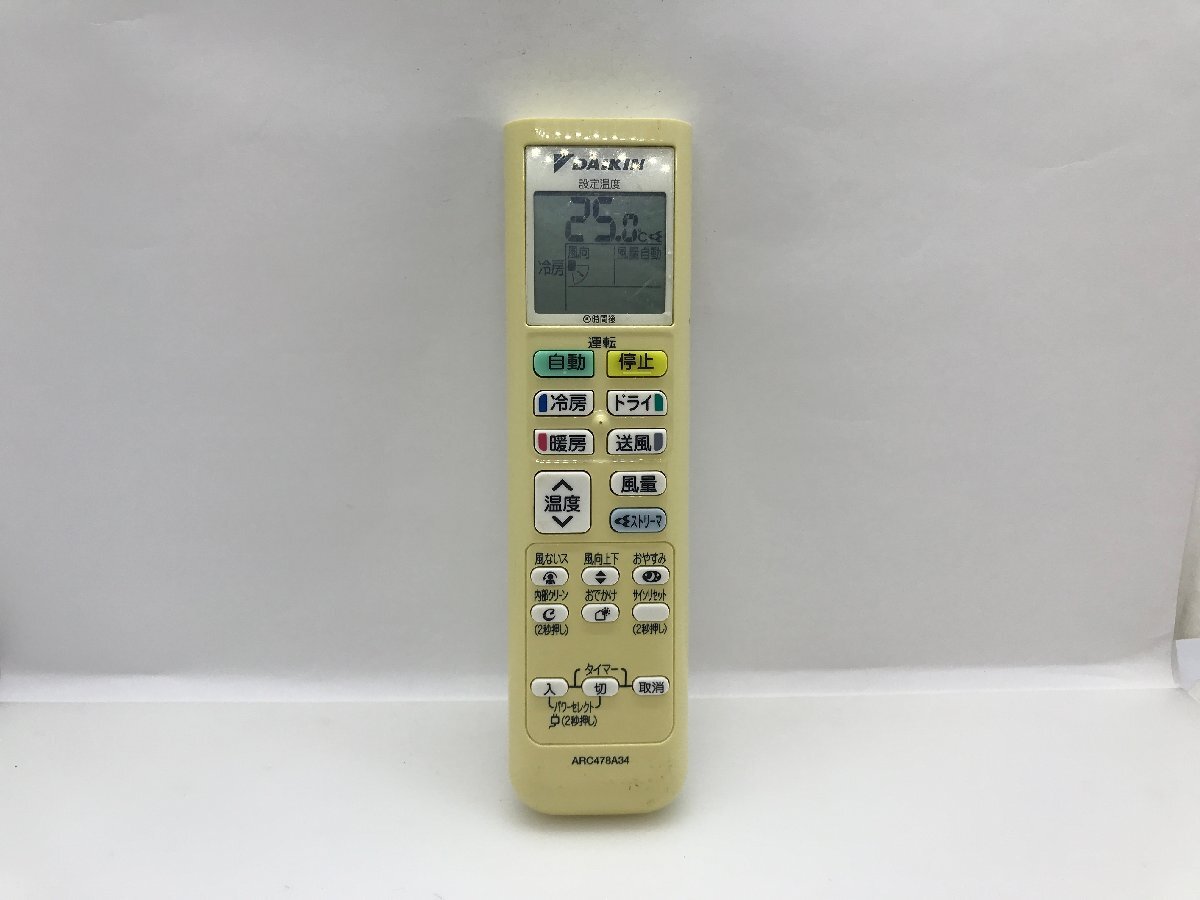 ダイキン エアコンリモコン ARC478A34 中古品C-8892