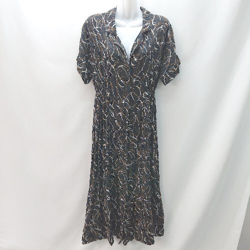 ◇ JEANASIS ウエストゴム 調節紐あり 半袖 ロング丈 ワンピース サイズF ブラック ホワイト ブラウン レディース E