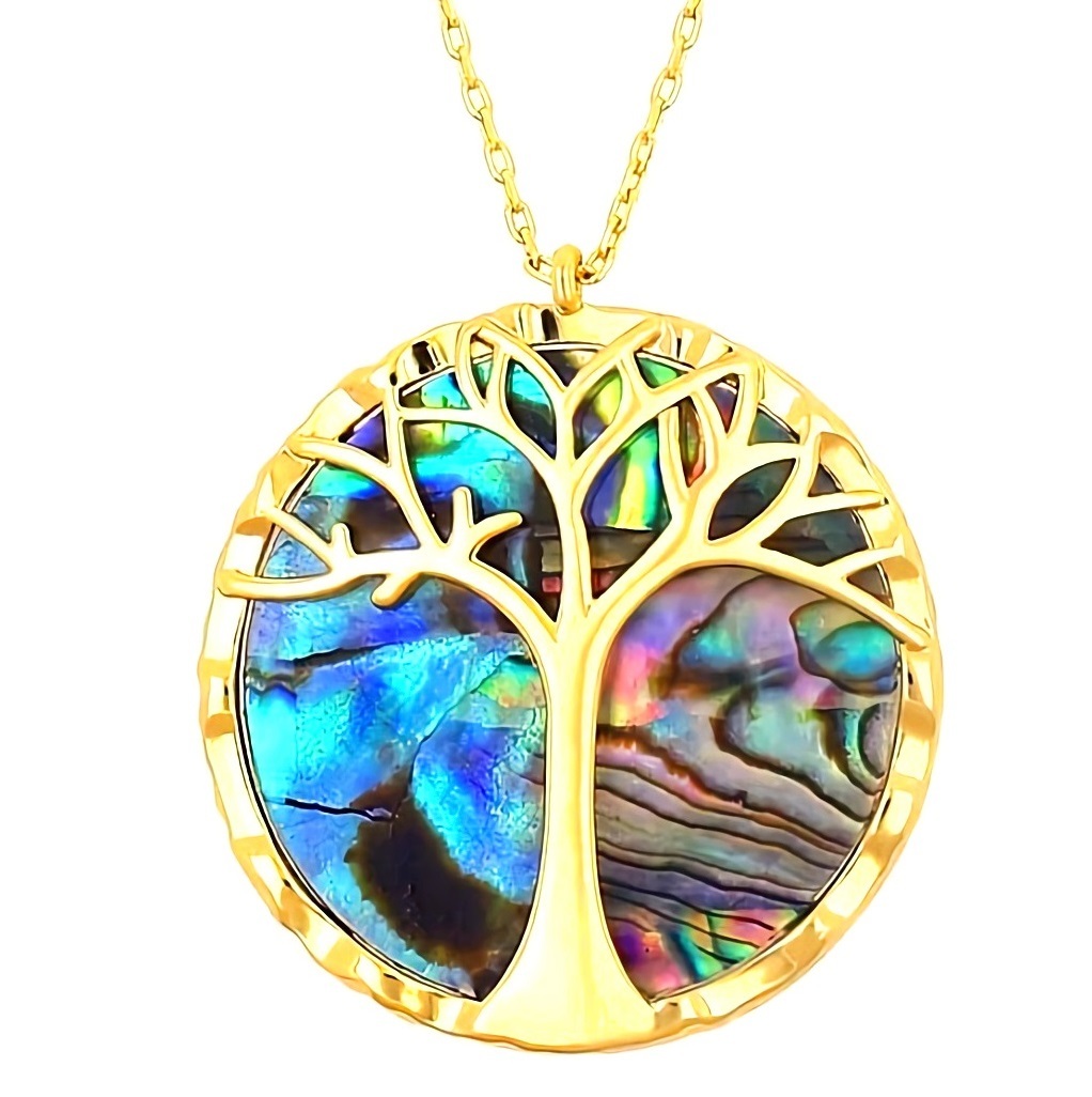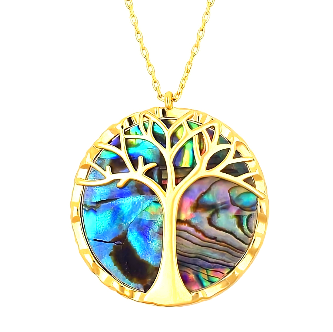 新品★送料無料★七色の光パール 天然アワビ貝 黄金世界樹 K18GFゴールドネックレス 誕生日プレゼント旅行連休花見初春ギフト国内発送