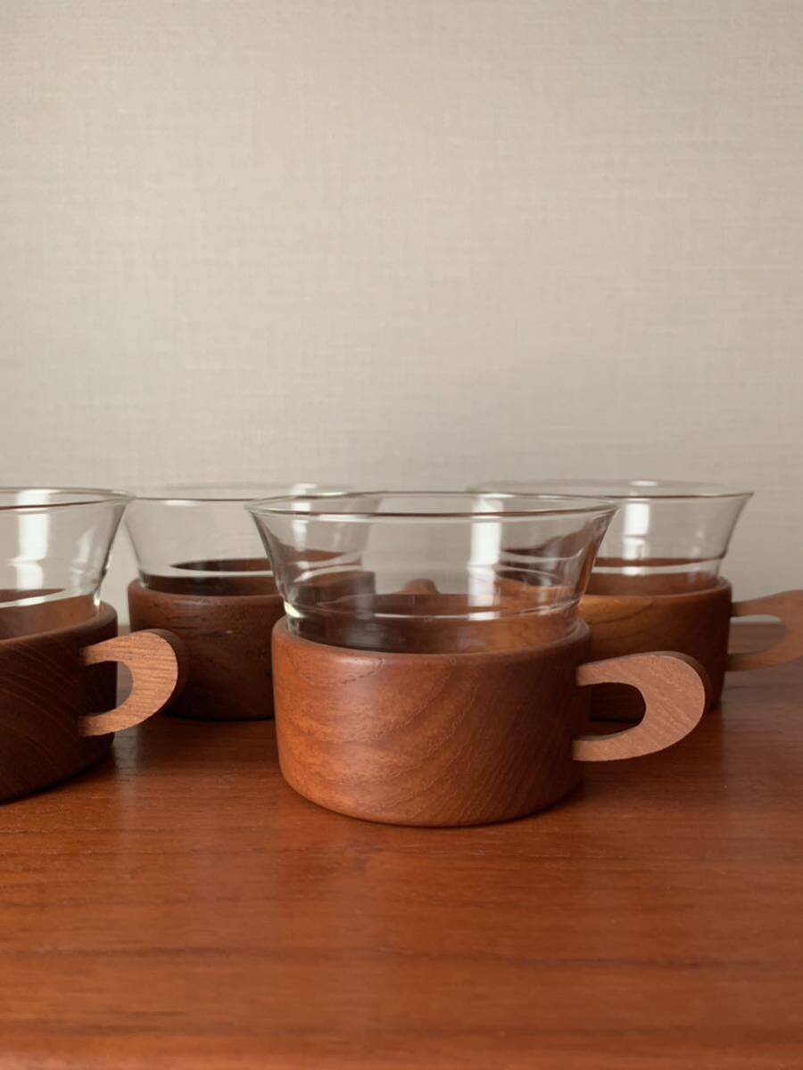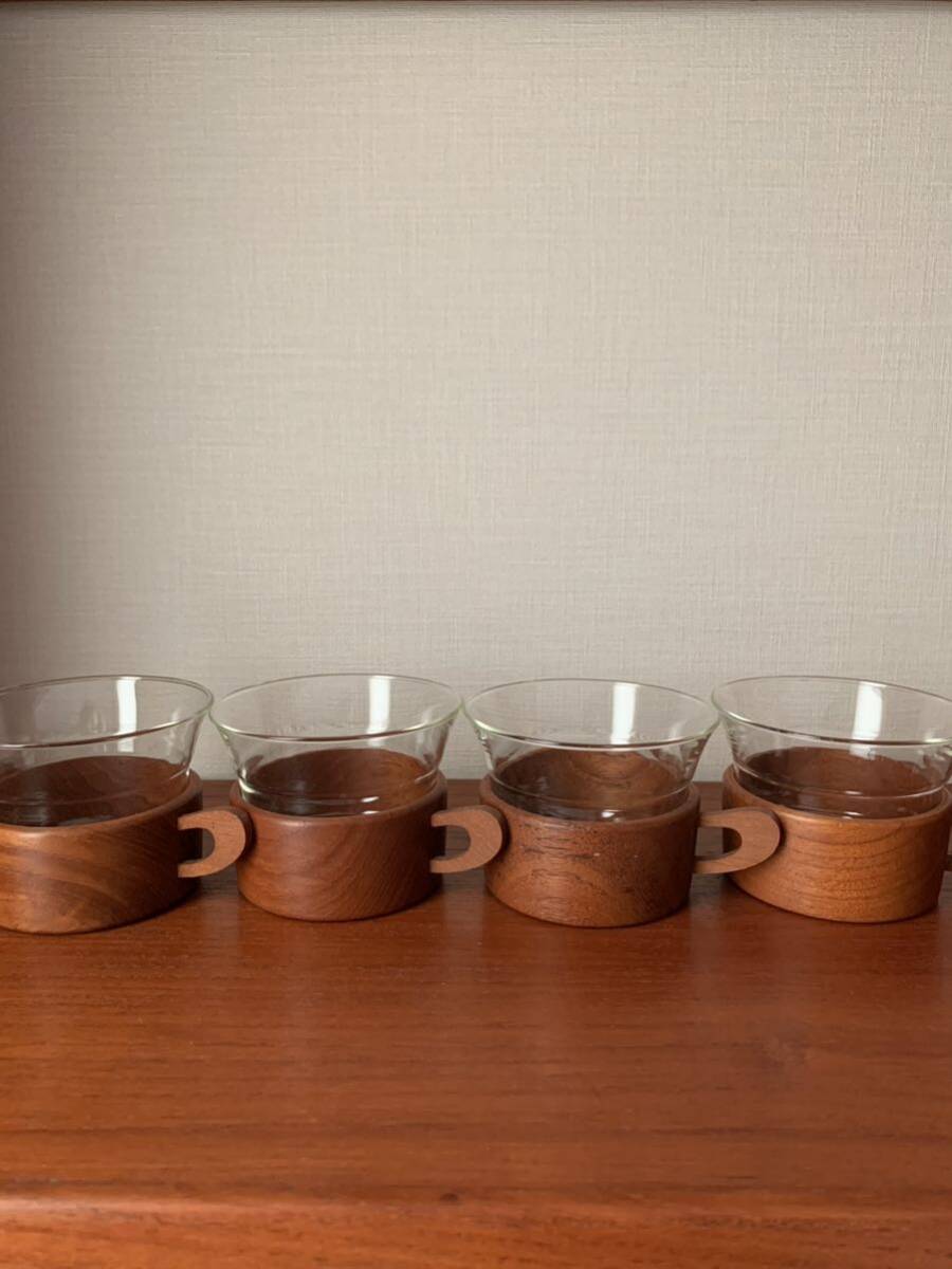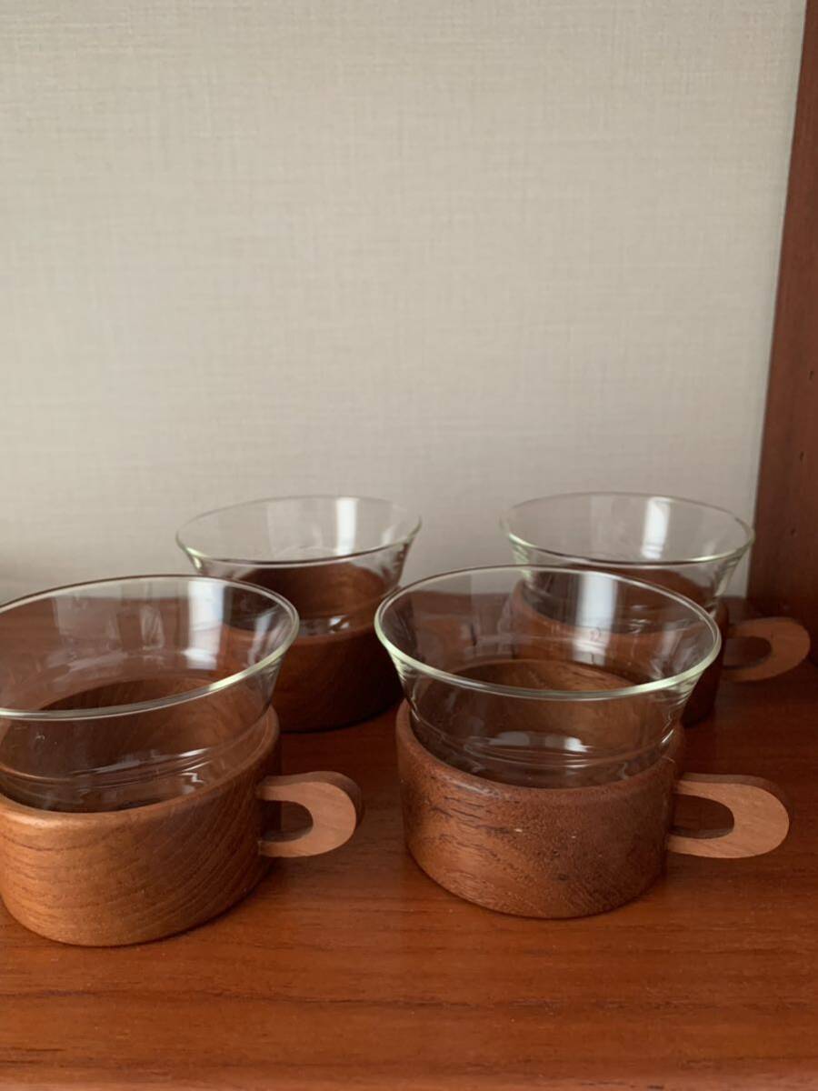 JENAガラスの木製フォルダー付きガラスコップ4客です。