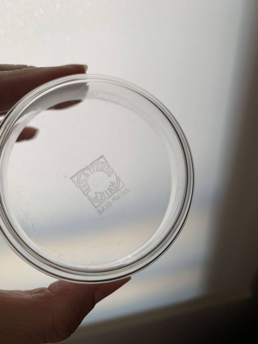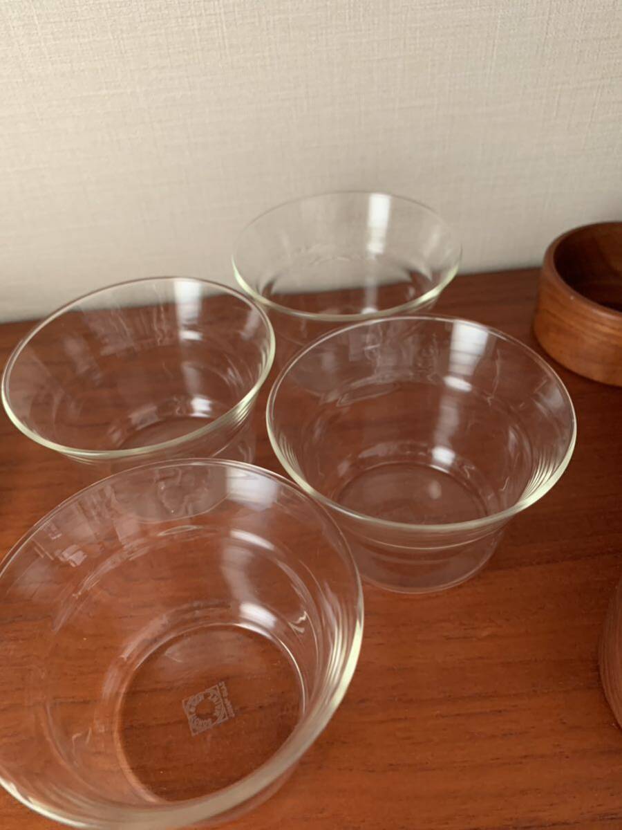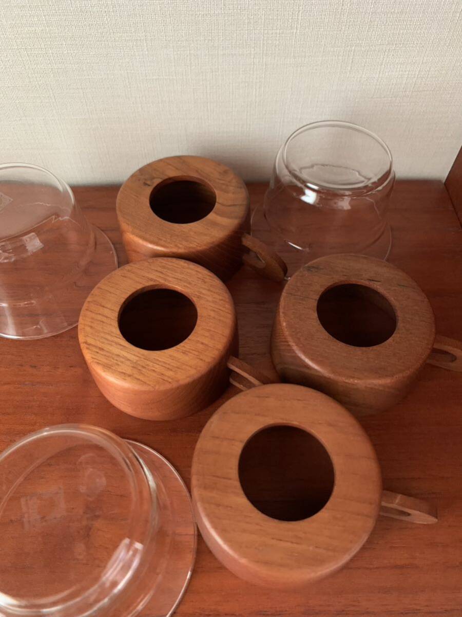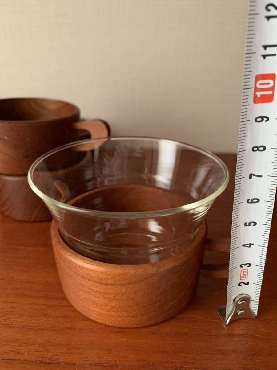 JENAガラスの木製フォルダー付きガラスコップ4客です。