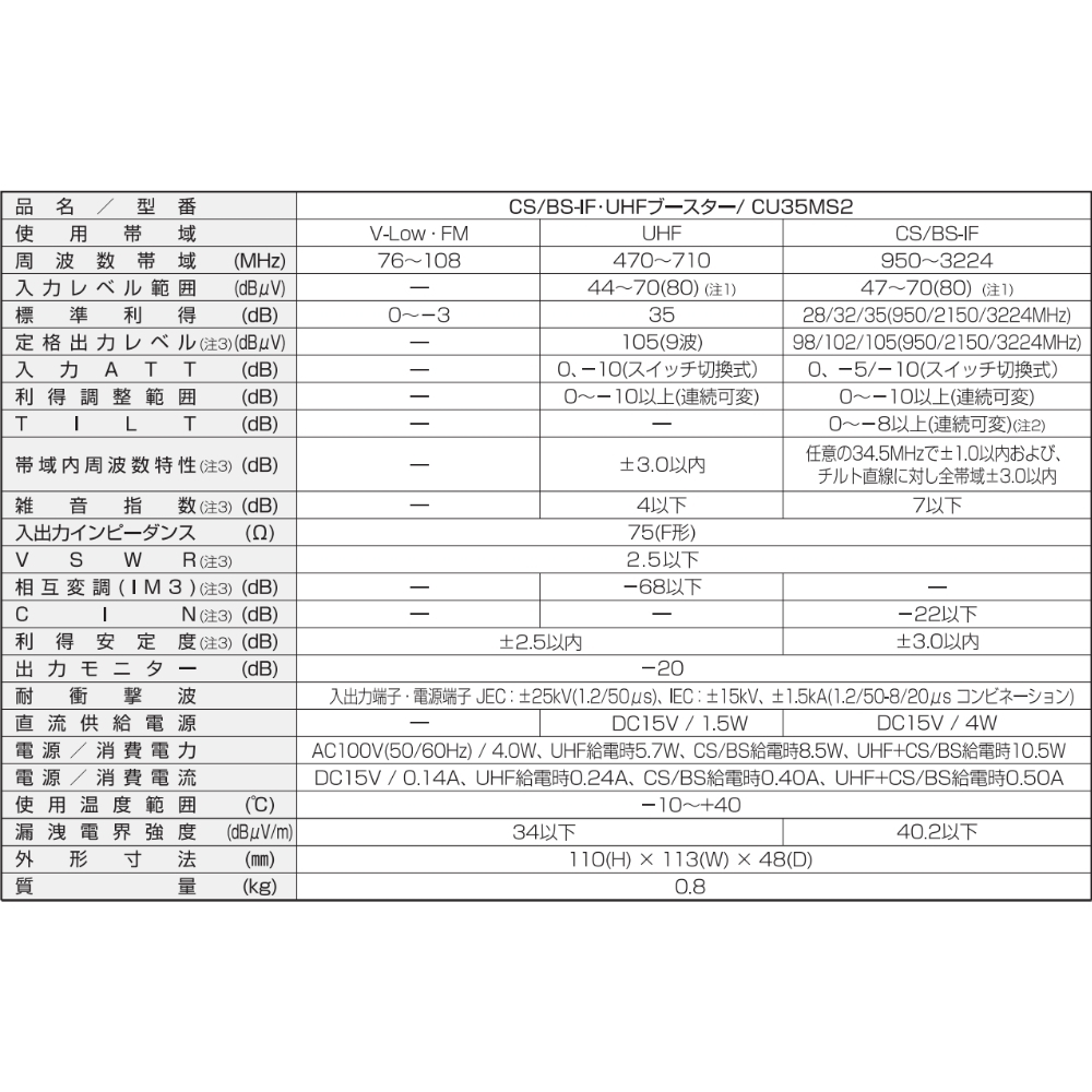 CS/BS-IF:28dB・950MHz/32dB・2150MHz/35dB・3224MHz