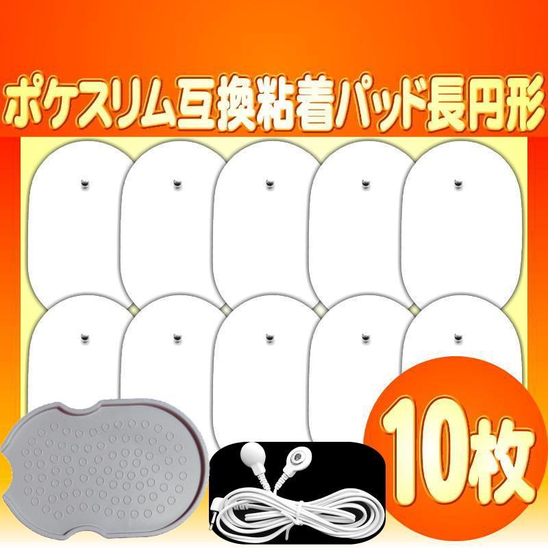 特価ポケスリム EMS 対応互換品 交換用 粘着パッド5組10枚+導子コード+収納板 取替え マッサージ器 低周波治療器 EMS 長円型 送料無料