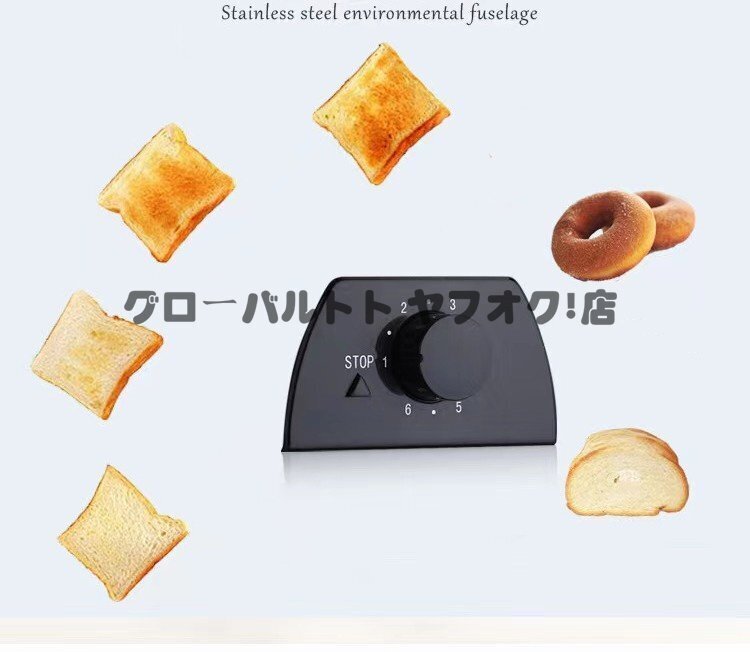 新品 ポップアップ式トースター 2枚焼き ステンレス ミニトーストボタン式トースター 6レベルタイミング設定ベーキングトースター110v