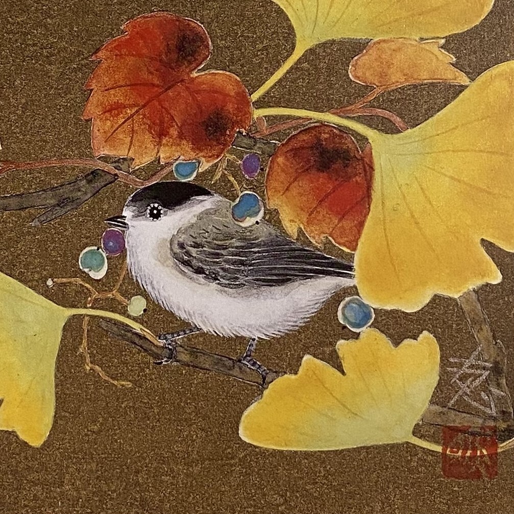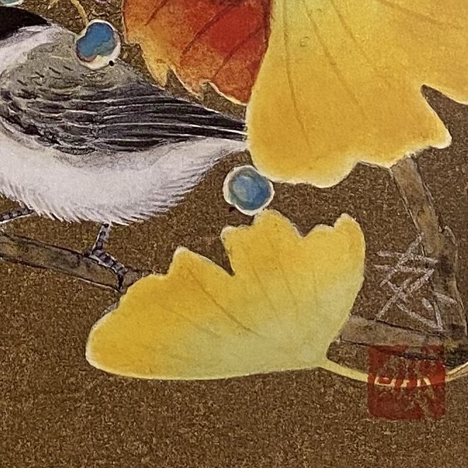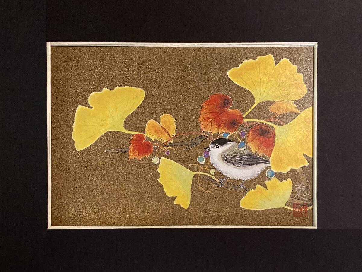 堀川えい子、〈黄葉子雀〉、希少画集画、高級新品額・額装付、状態良好、送料無料
