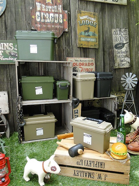 ガレージの棚に、クルマのトランクに、キャンプシーンに・・・・ビシッと男のミリタリー色で決めて下さい( ̄ー ̄)ニヤリ☆
