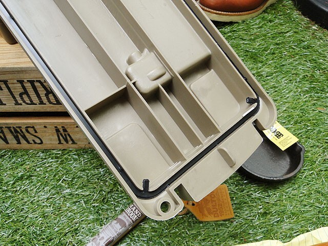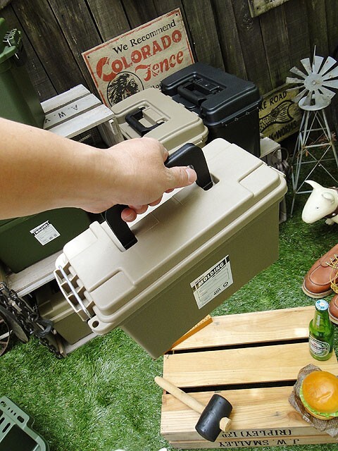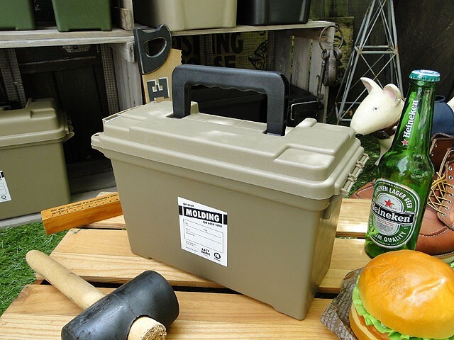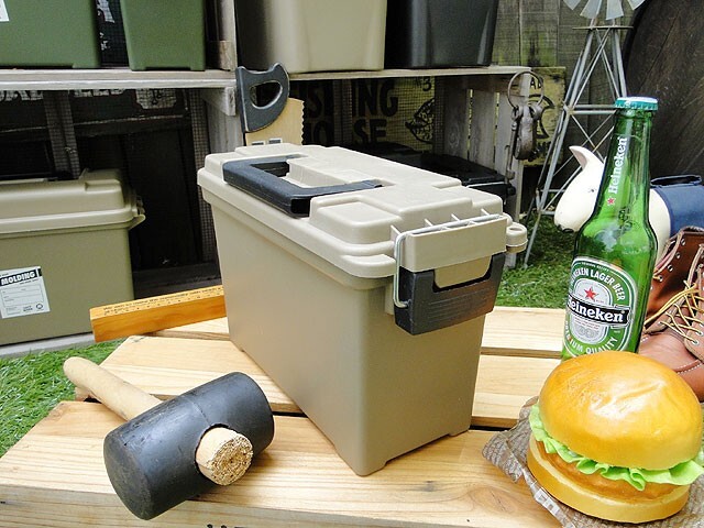 米軍が弾丸ケースとして使うアーモボックスをモチーフに、プラ製で再現したっていう画期的なツールボックスです。