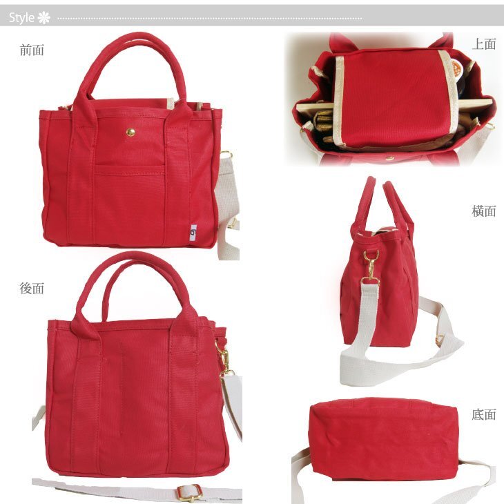 トートバッグ 間仕切り 2WAY ショルダーバッグ 帆布 ハンドバッグ 多機能 肩掛け レッド 新品