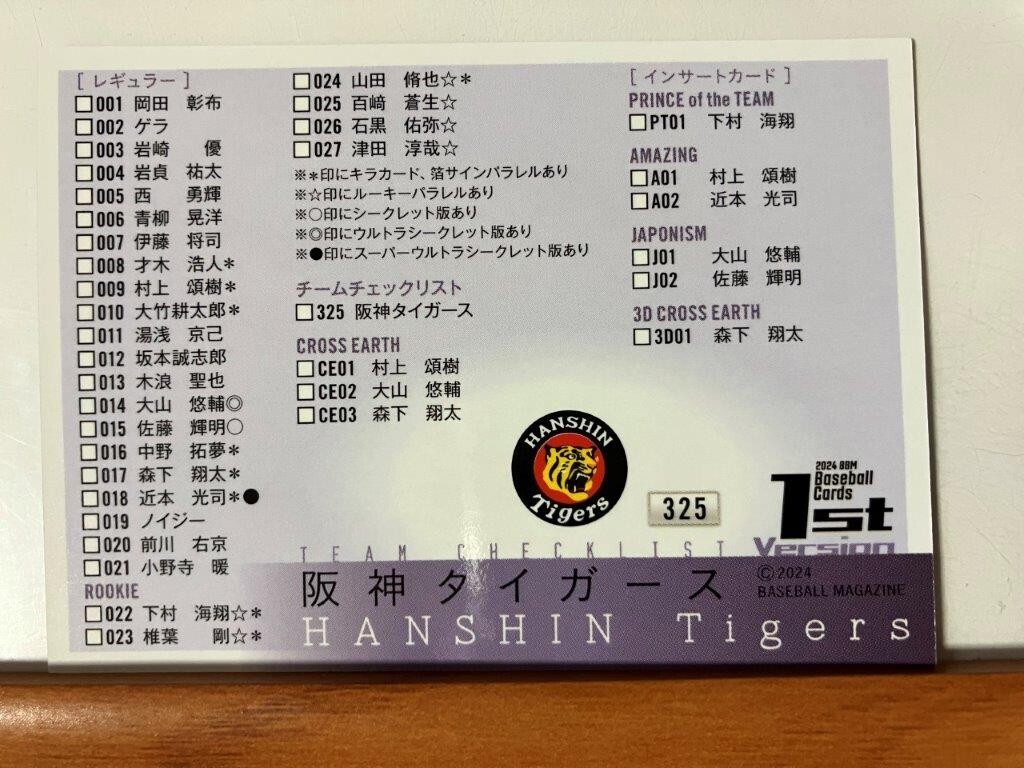 【2024 BBM 1st】325阪神タイガース チームチェックリスト