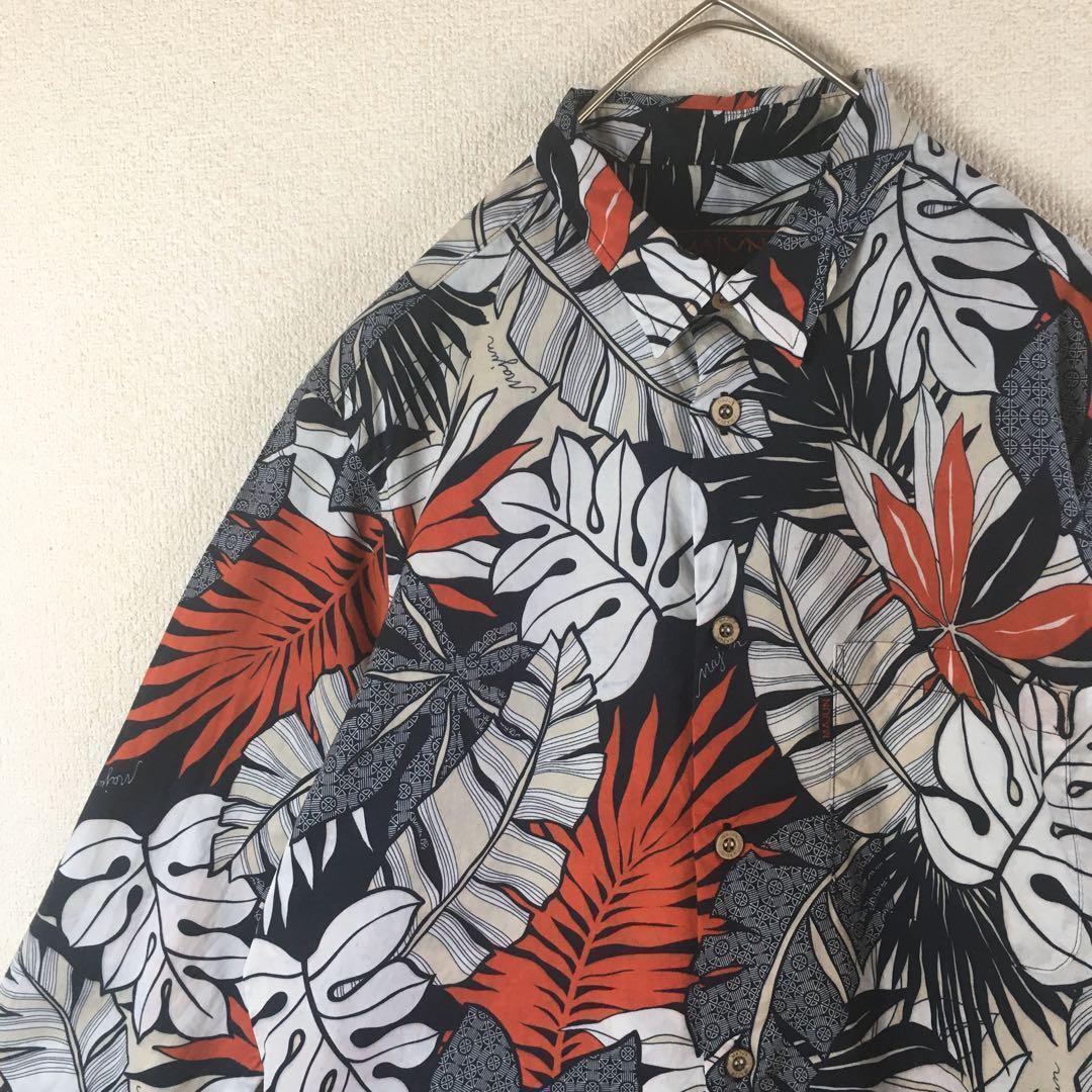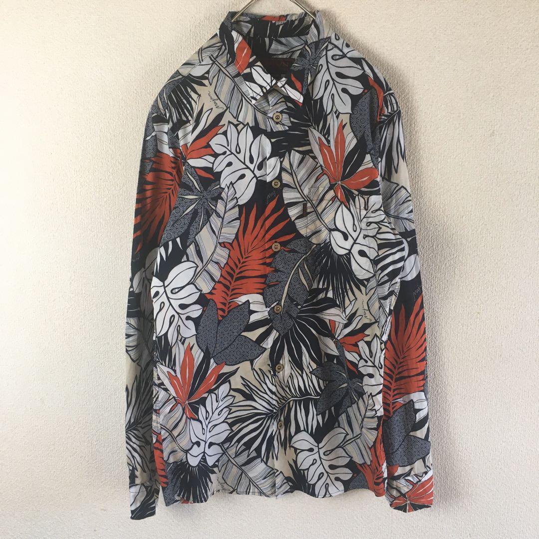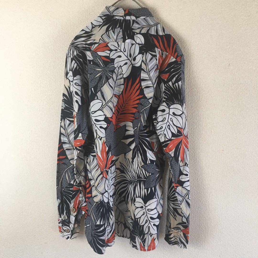 H2デザインシャツ 切り絵調 柄シャツ 長袖 Mメンズ ボタニカル スリム