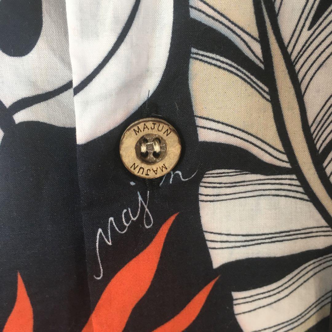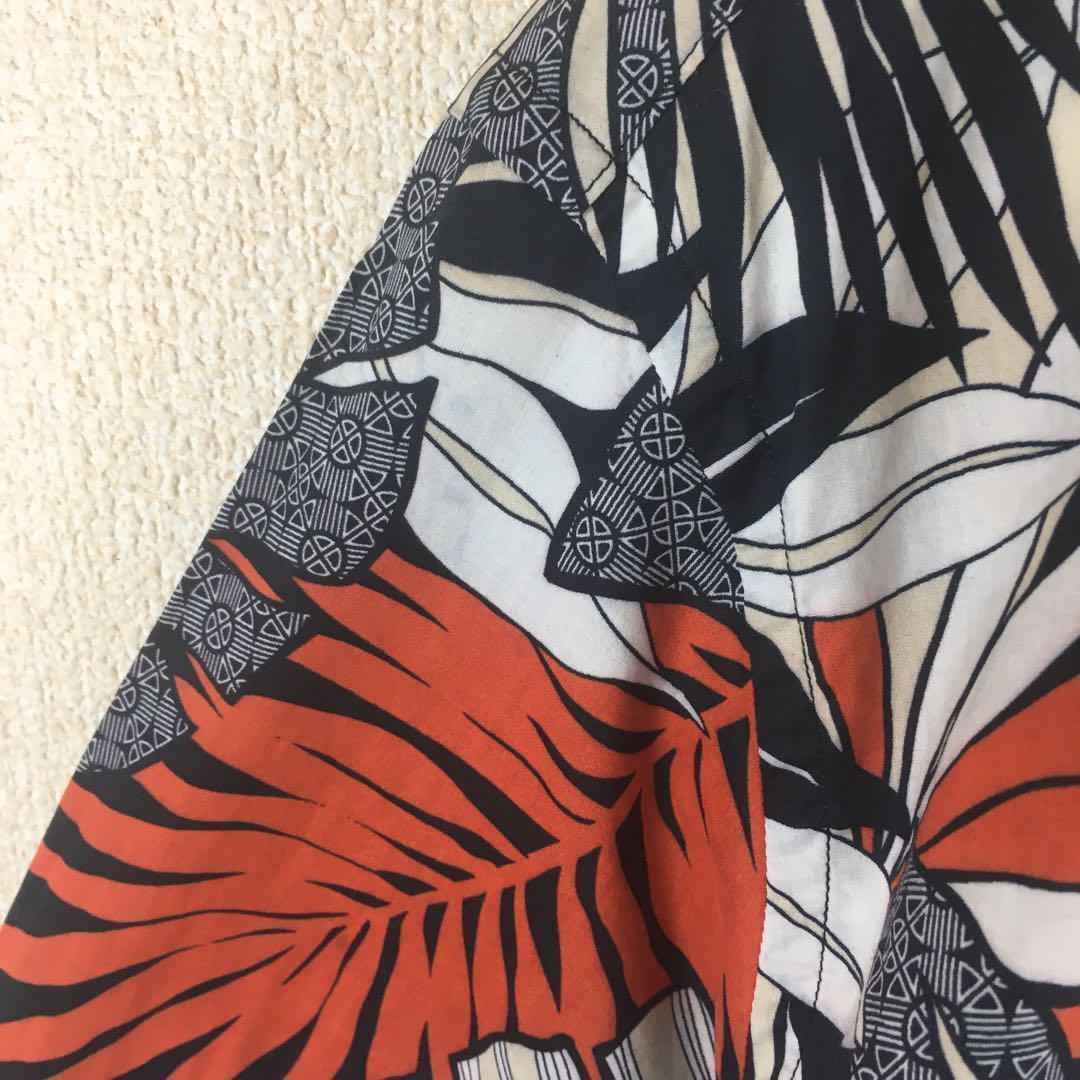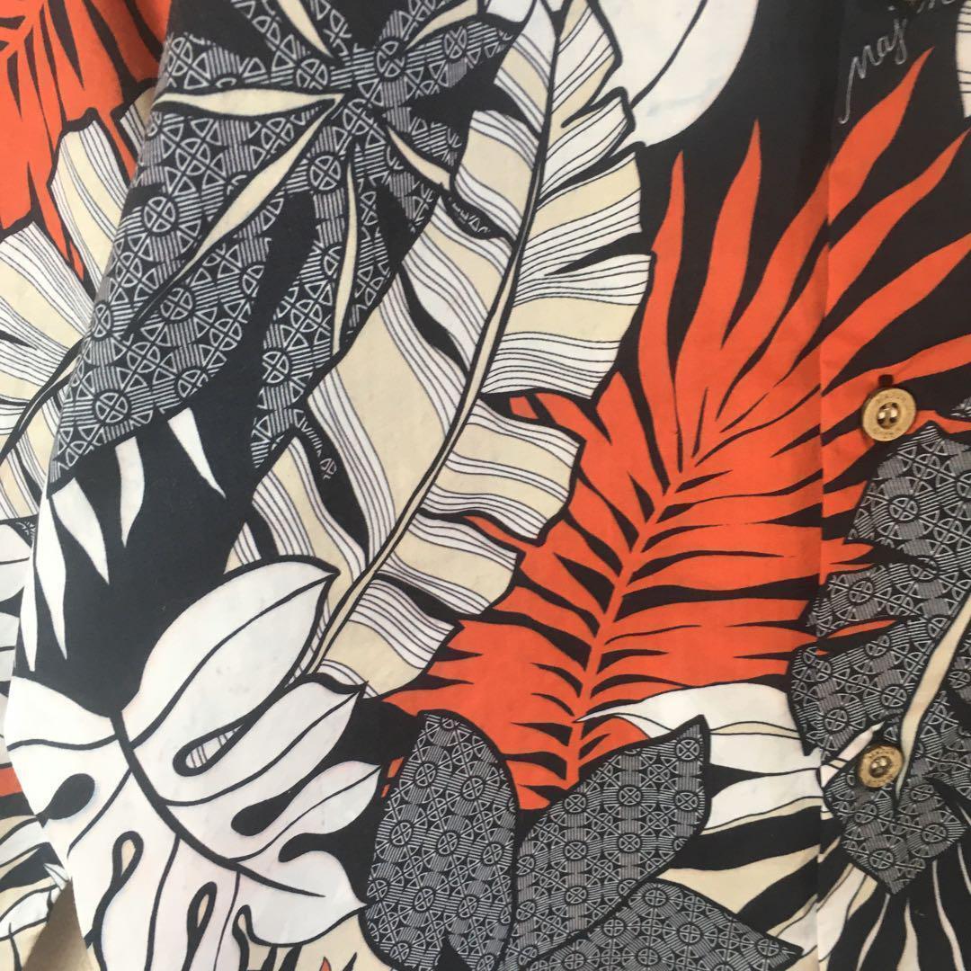 H2デザインシャツ 切り絵調 柄シャツ 長袖 Mメンズ ボタニカル スリム