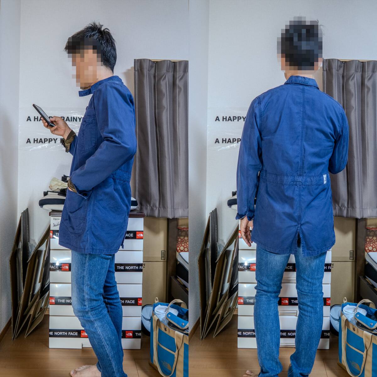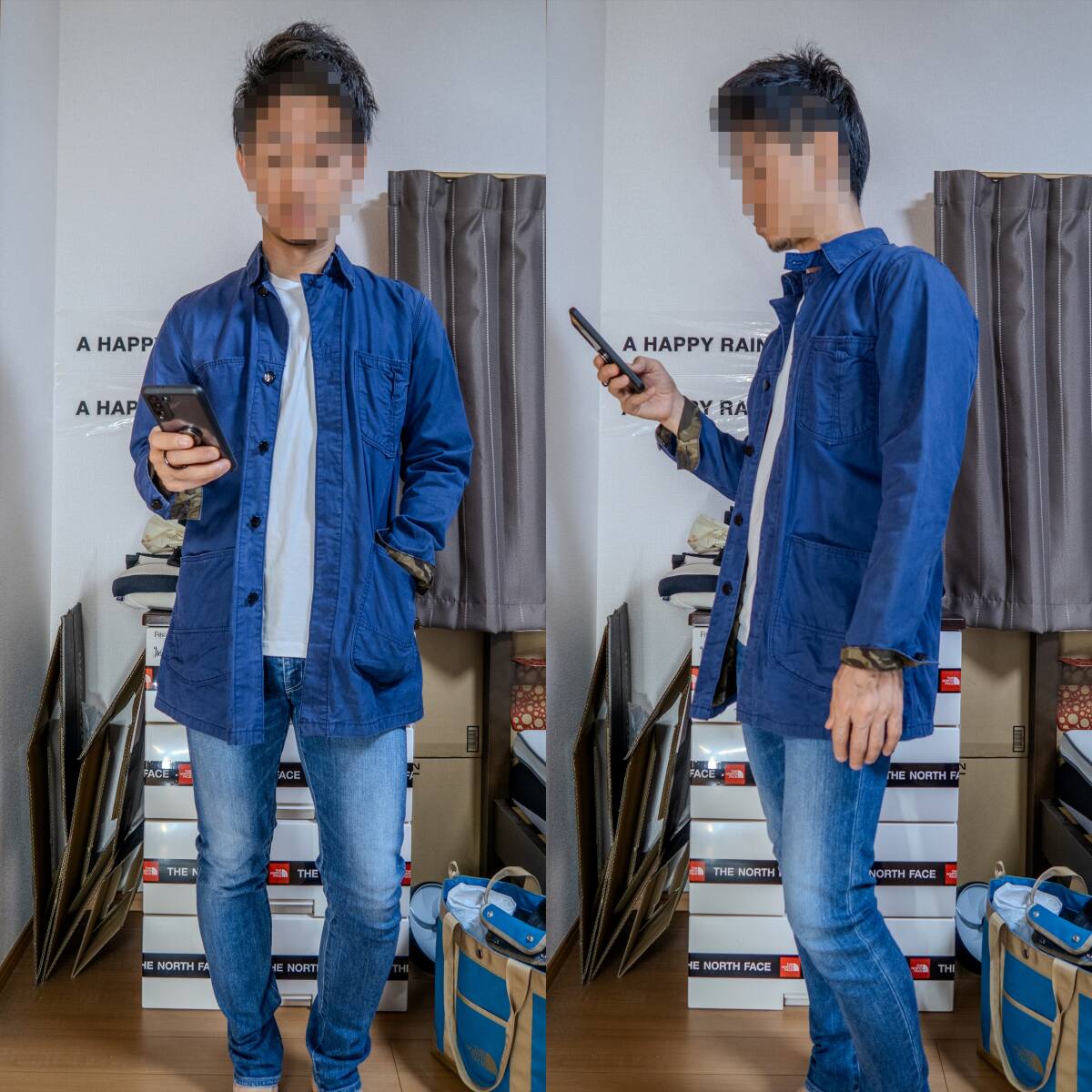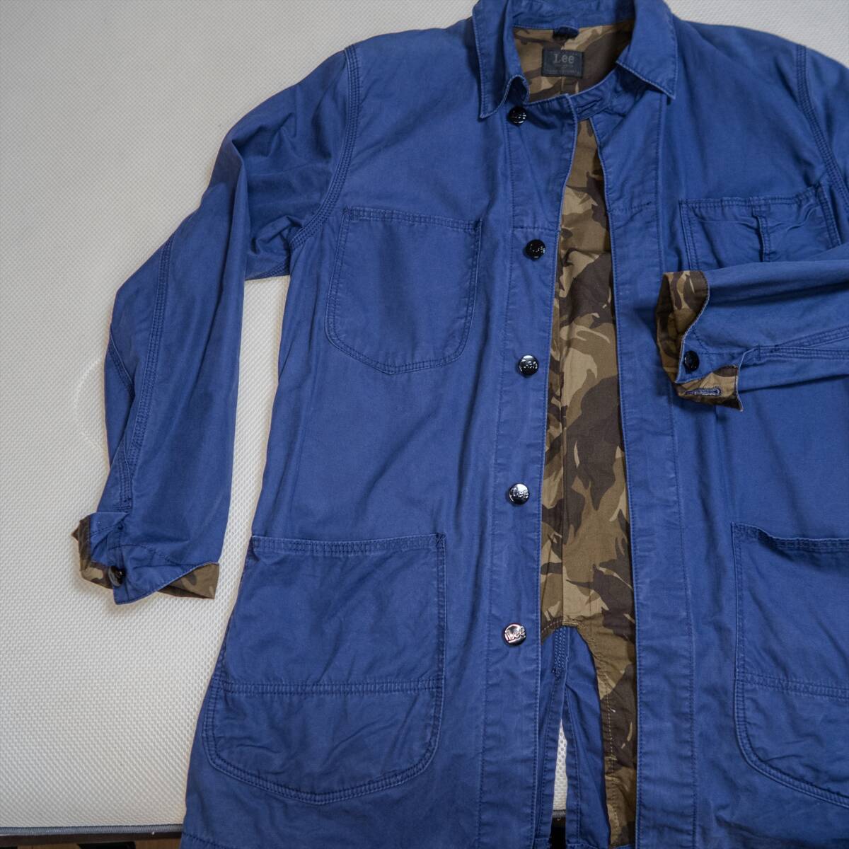 写真の着用者でちょうどです 参考:170cm/61kg 日本人のS~Mサイズです 【素材】 綿:100% 【特徴】 ・別注らしいシルエット ・裏地が迷彩 ・ほどよいビンテージ加工 | ||||||||||||