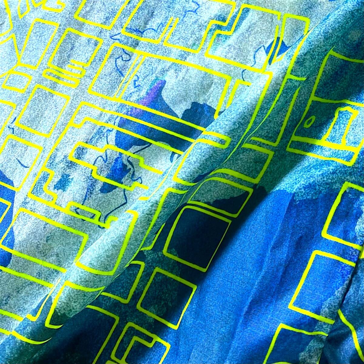 サイズ US:L JPN:XL 製品寸法 着丈105cm 脇下身幅57.5cm 肩幅61cm 袖丈65.5cm 素材 ポリエステル100% カラー ブルー系 総柄 コンディション 新品・未使用・正規品