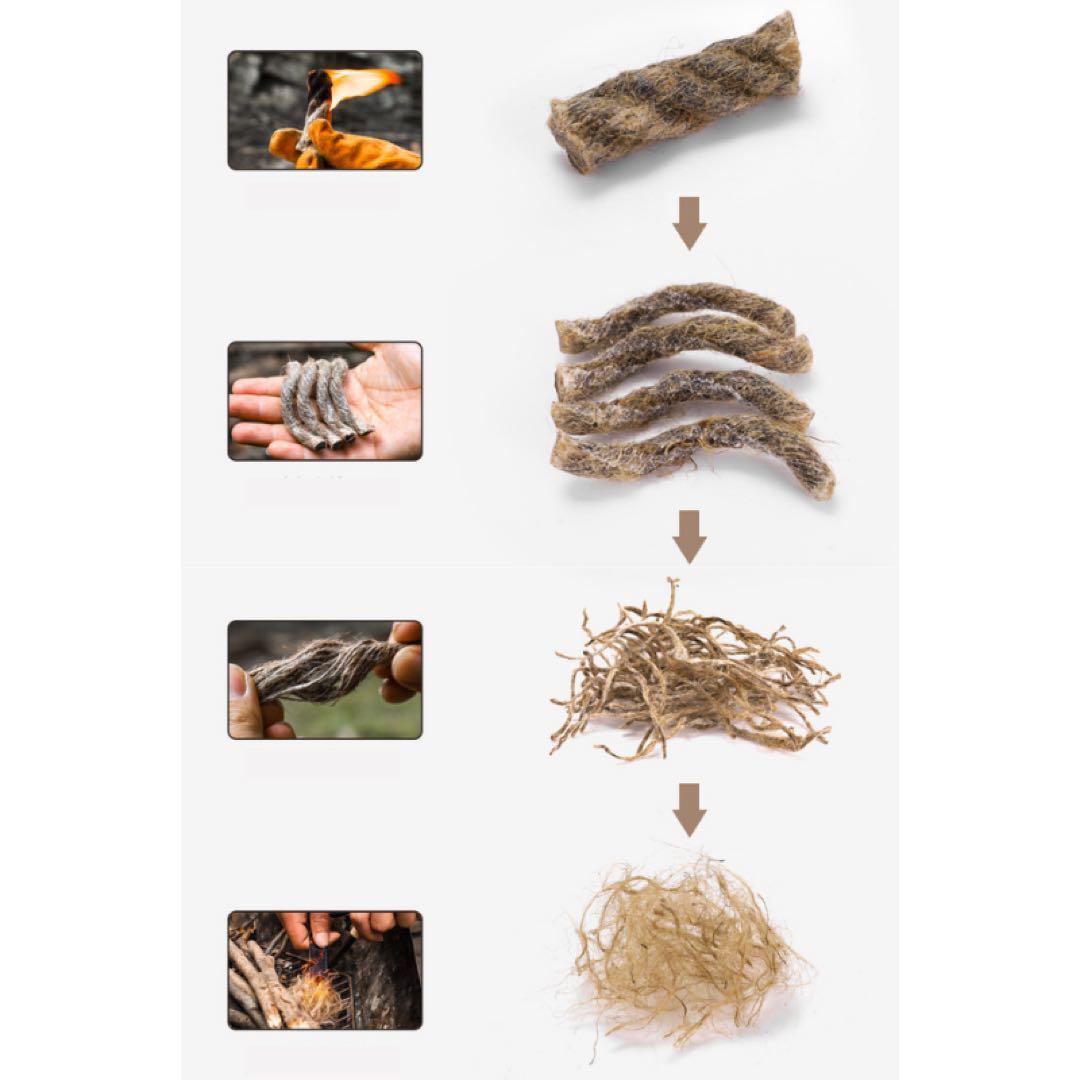 麻はほぐして焚き火の着火、火口としてご利用頂けます。