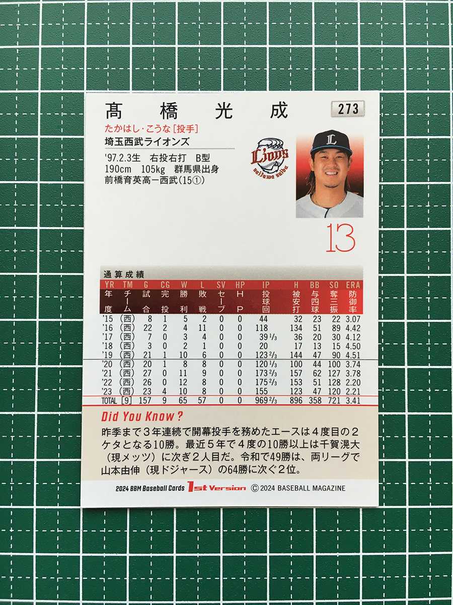 ★BBM 2024 1stバージョン #273 高橋光成[埼玉西武ライオンズ]レギュラーカード★