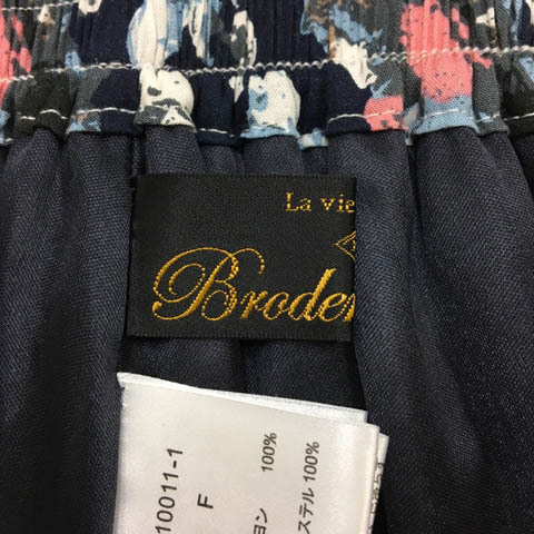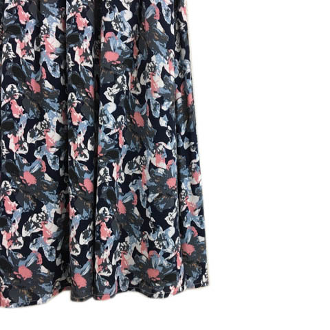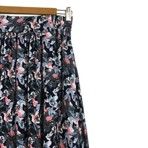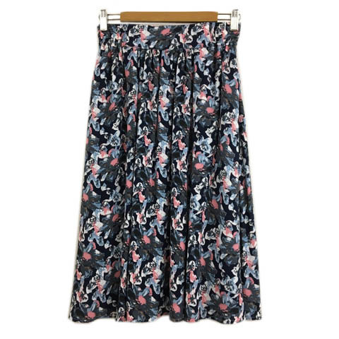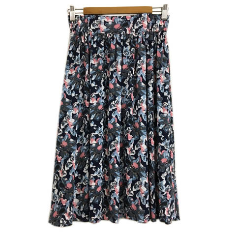 ブロードゥリー&コー ナノユニバース スカート フレア ギャザー ひざ下 ミモレ 花柄 総柄 ウエストゴム イージー F 紺 ピンク