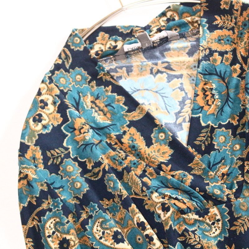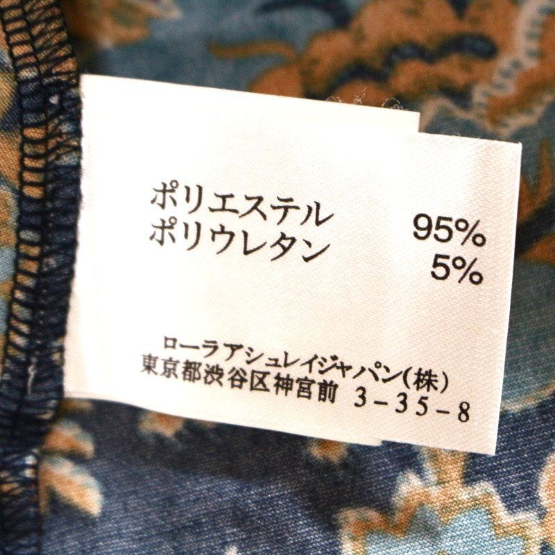 美品 ローラアシュレイ Laura Ashley 春 夏 上品 エレガント エスニック プリント ジャージ― カットソー S 7号 ネイビー 紺 ストレッチ