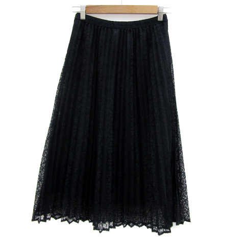 エニィスィス エニシス anySiS プリーツスカート ロング丈 花柄 総レース 2 紺 ネイビー /YS27 レディース