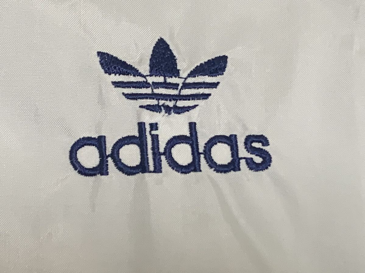 アディダスオリジナルス トレフォイル デサント90s80sビンテージ ナイロンジャケット ネイビーです。