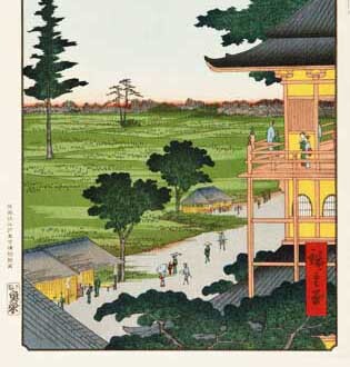 真作保証 東京都伝統工芸品 額装 歌川広重 木版画  #066 五百羅漢さゞゐ堂   初版1856-58年頃     広重の世界を唸らせた名構図!