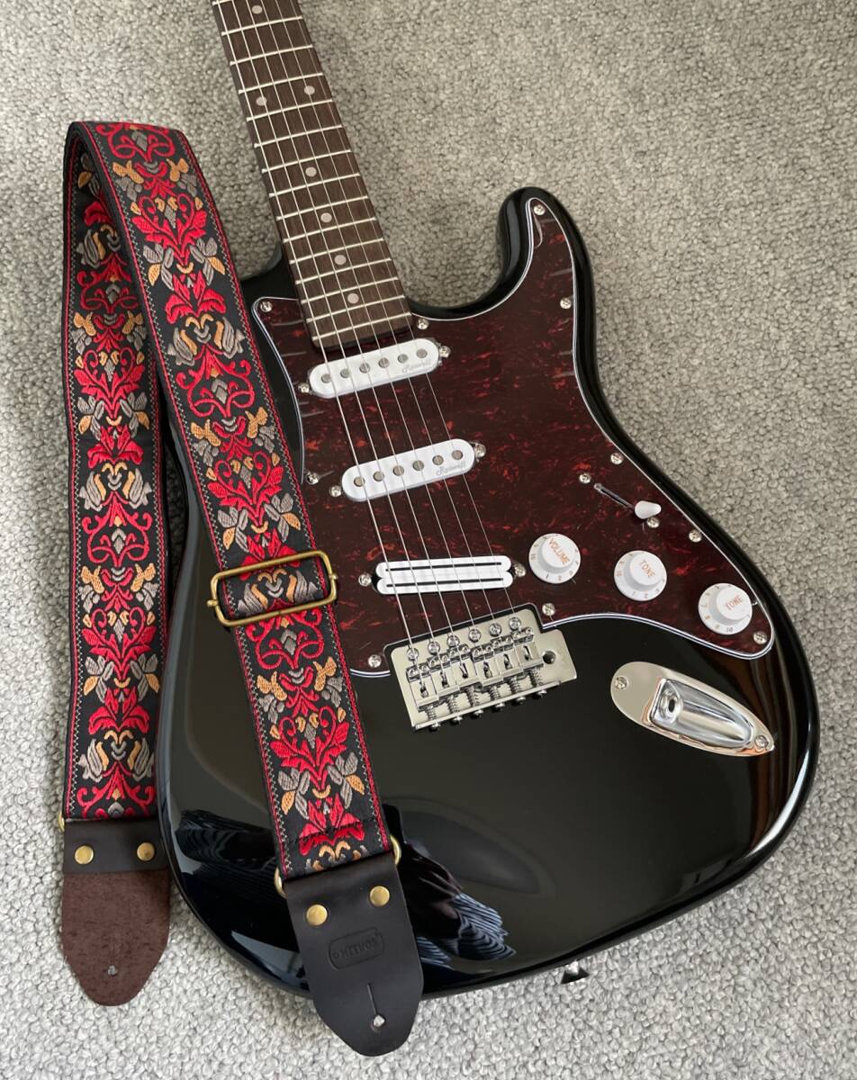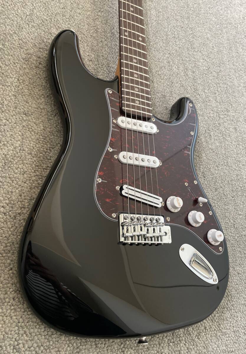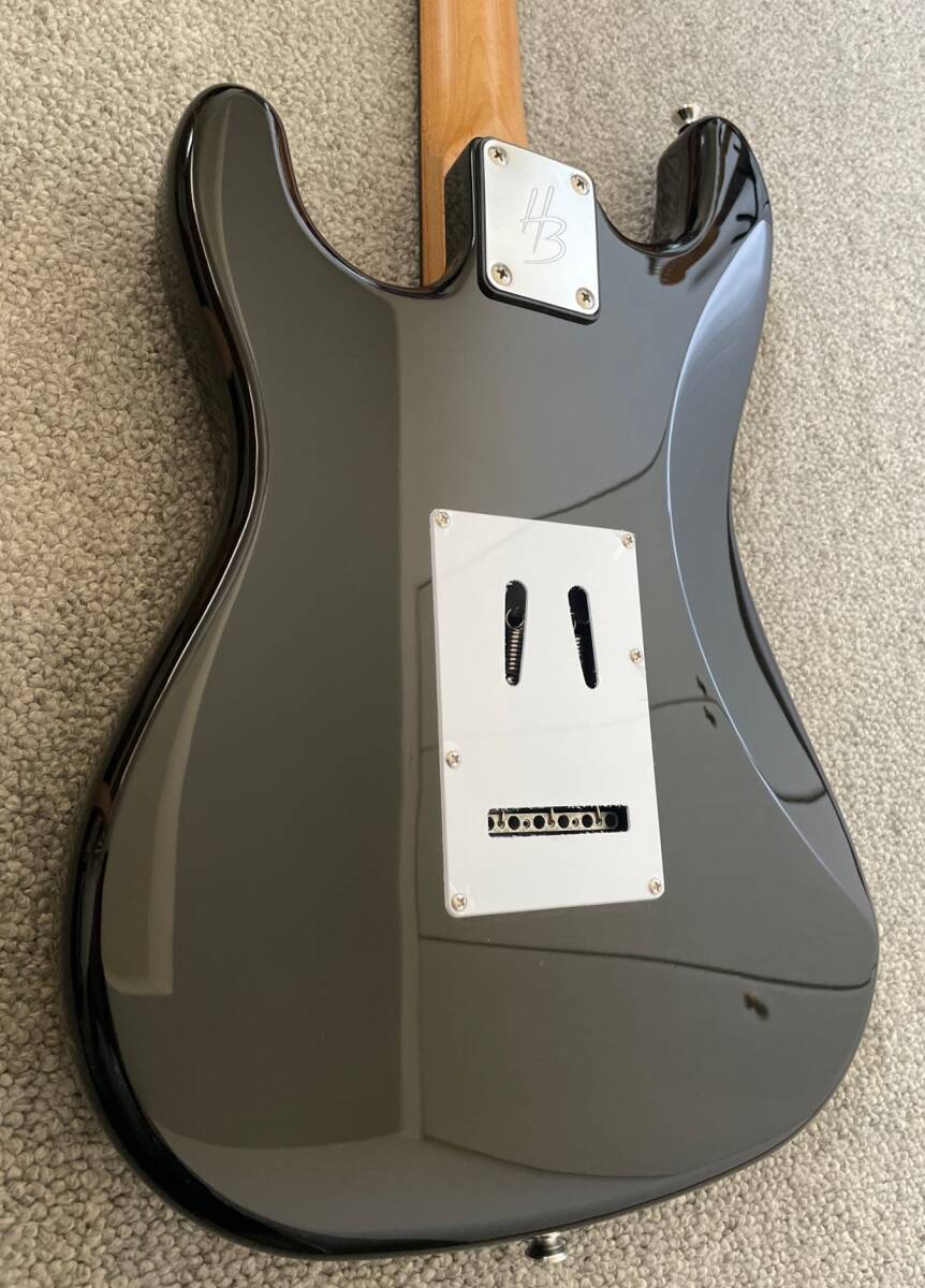 ドイツのギターショップPBハーレーベントンのギターです。ブラックカラーのホットロッドストラトキャスタータイプで、新品に近い状態ですが、ネック、弦高、ピックアップの高さなど手を入れて調整済みです。