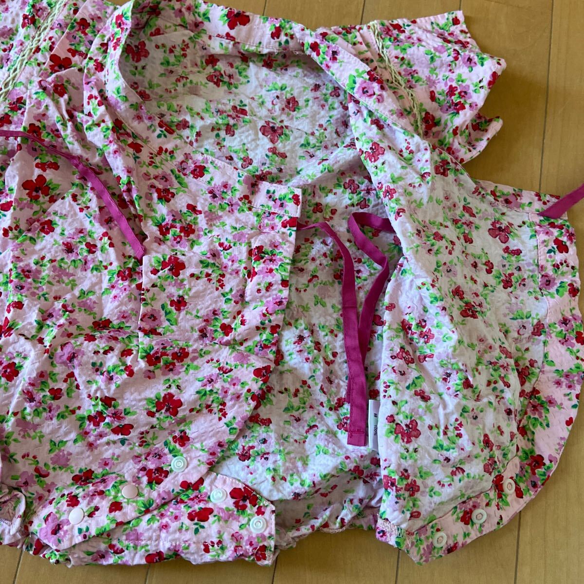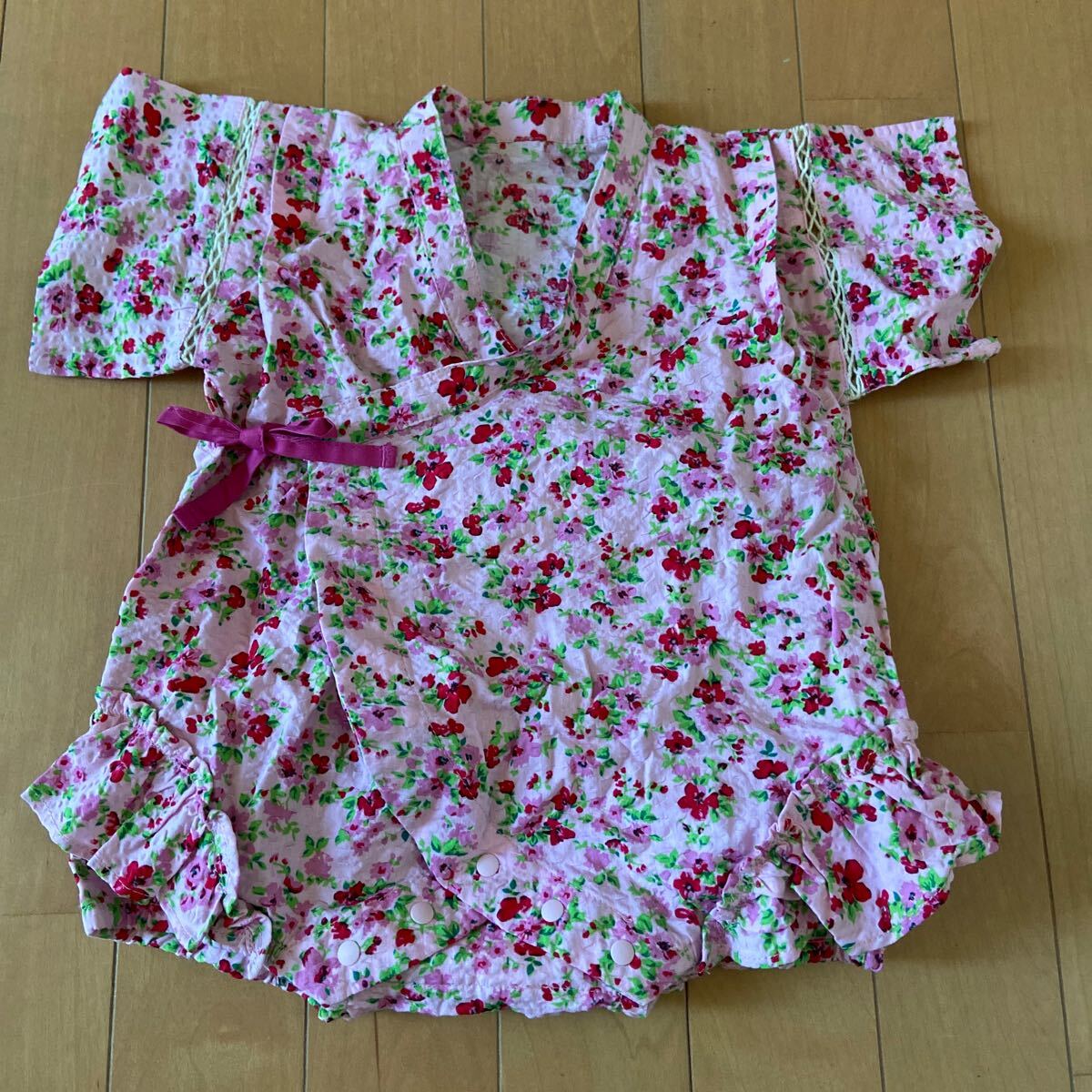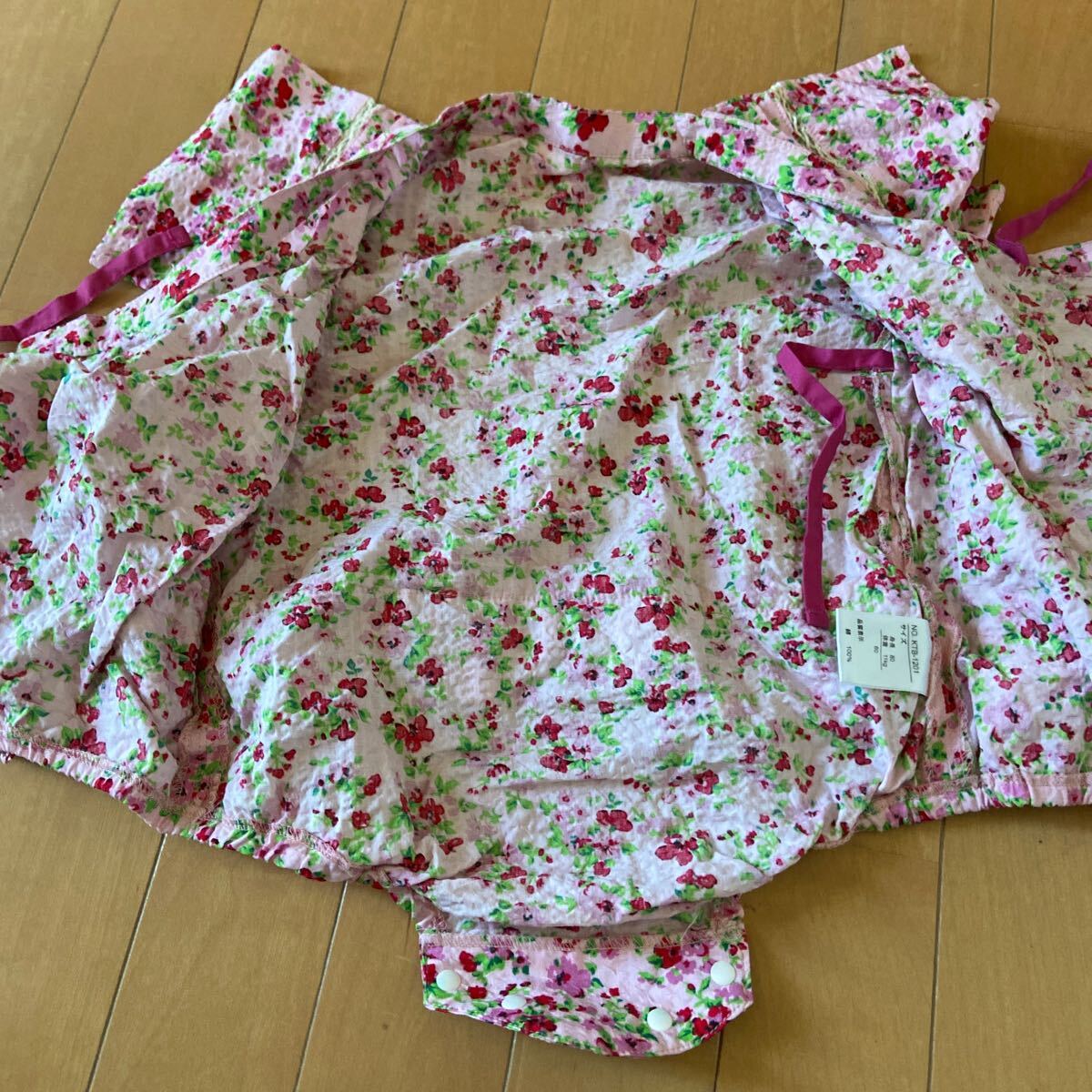 ベルメゾン☆サッカー素材 小花柄 甚平風カバーオール 浴衣♪サイズ80☆新品