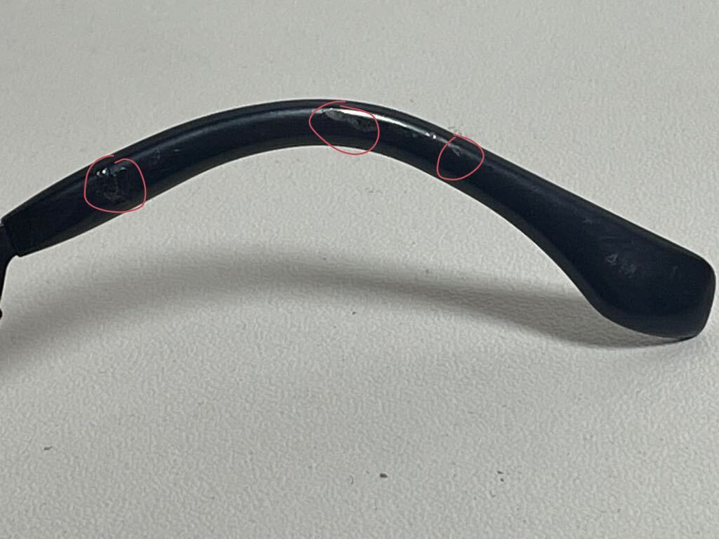 テンプルの裏側に擦れ小傷箇所があり。写真◯にしております。ご参考ください(内側なので目立つません)。